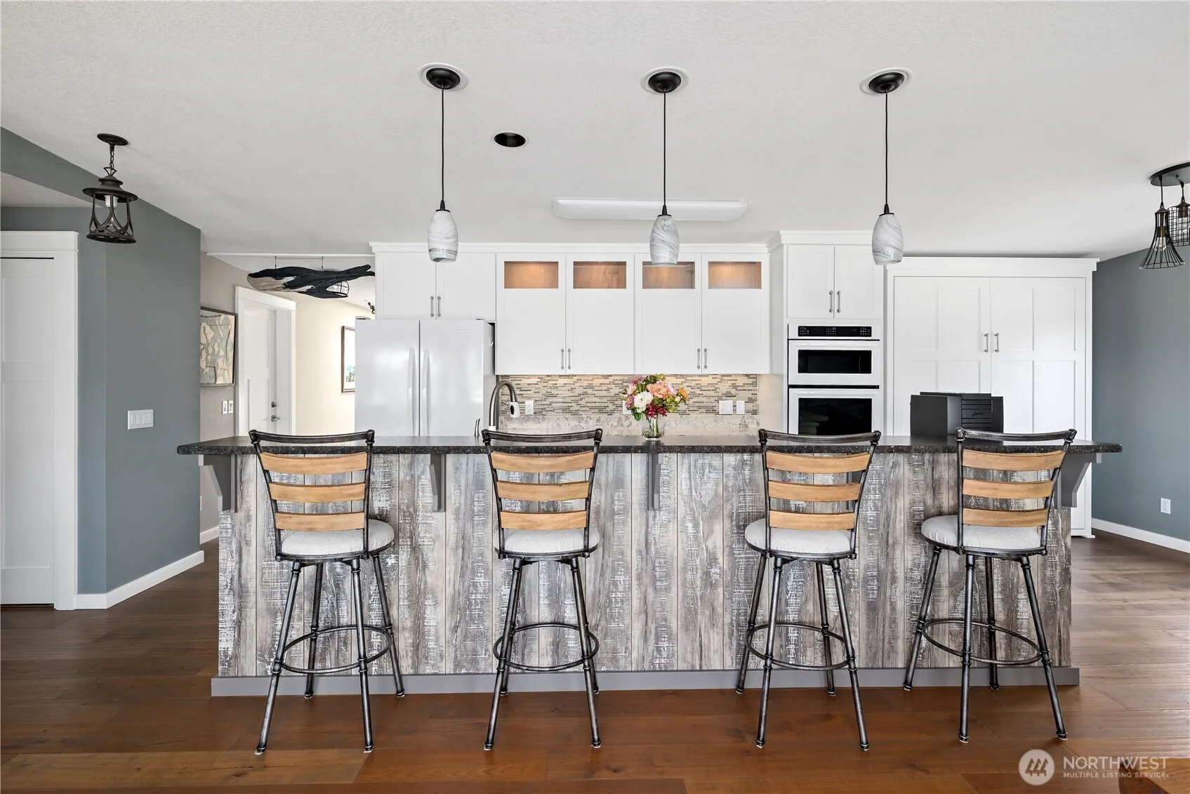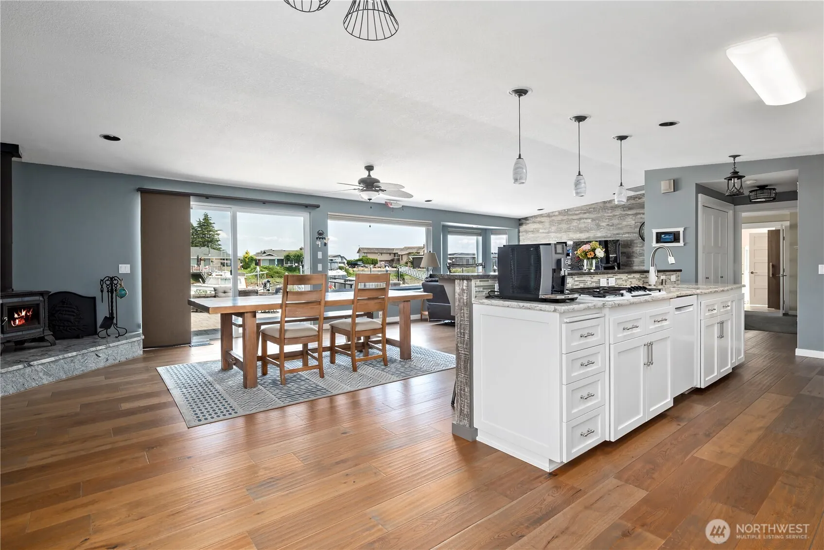 Welcome to your slice of paradise! This remodeled 2 bd 1.75 bath single-level home offers 74′ of waterfront, private dock & views of Saratoga Passage from your back door. Inside the great room is perfect for entertaining, with vaulted ceilings, cozy fireplace & natural light pouring in thru skylights. The master suite features a walk-in closet, double vanity & private sauna for the ultimate retreat. For the seafood lover? The tiered patio is equipped with a built-in gas line transforming your fresh catch into a feast at your own luxury Crab Shack. This home brings the coastal vibe to life. Beach access, pickleball court & tranquil setting minutes from town is more than a home it’s a lifestyle. Come for the weekend, stay for a lifetime!