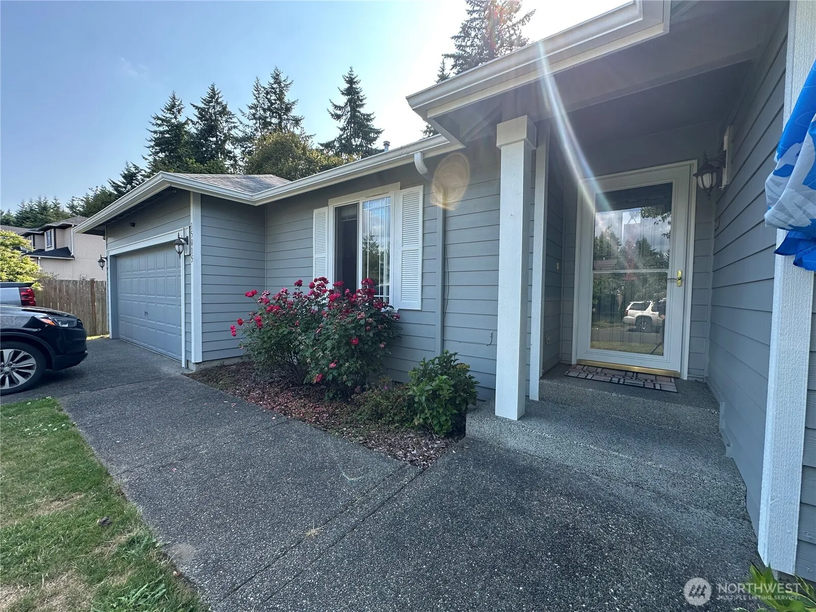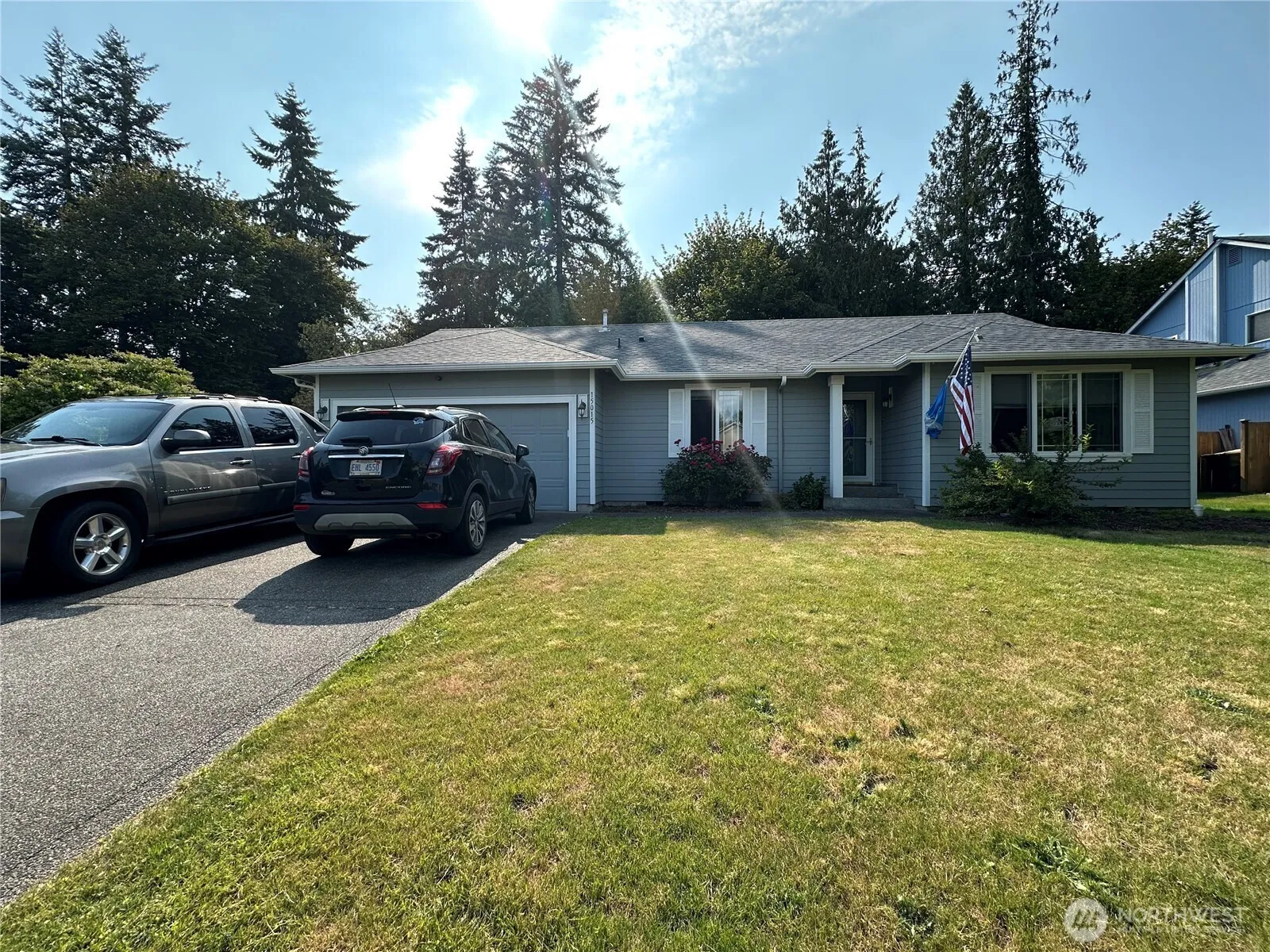 Charming 3BR/1.75BA Rambler in Yelm! This one-story home offers open concept living with vaulted ceilings, a gas fireplace, and a spacious kitchen with island—all appliances stay! Enjoy the privacy of a greenbelt behind and no neighbor on one side. Fully fenced yard, covered patio with adjustable awning, ceiling fans, and heat pump with A/C. Sprinkler system for easy maintenance. 2-car garage. Conveniently located near schools, shopping, and JBLM.