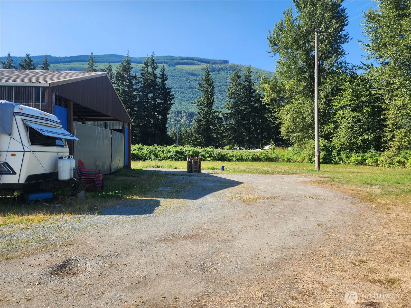 9 flat acres + 6180 sq ft warehouse, shop or storage space, w/12′ & 18′ ceiling just 12 min. E of Sedro-Woolley. Zoned Natural Resource Industrial. Opportunity for businesses dealing in the production, manufacture and storage of products utilizing natural resources & materials. Shop has 50 amp electricity for welding and 3-phase power is available. Pull a semi truck through the center space, and there is a fully equiped woodshop plus studio apt. with kitchenette. Zoning allows owner/operator to build a home & live on site- live in the studio while you build! Great visiblity right on Hwy 20, with approx 7-8,000 cars driving by daily. Owner Finance with $265k down. Owner is a licensed broker. Do not enter property w/out Owner or Broker.