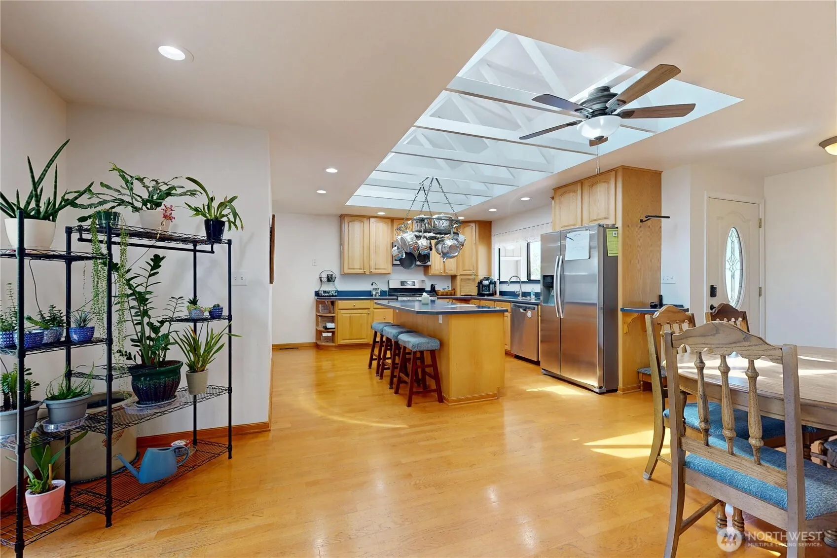 Ranch style home with 2,808 sq.ft. 4 bedrooms, 2 1/2 bathrooms. Open kitchen with 3 skylights and a center island. Living room has a fireplace with hearth. The basement has 2 bedrooms with egress windows, and there is a family room plus a large hobby room. The double garage has 2 separate insulated doors with auto openers. Backyard has a large patio, and a storage shed with concrete floor