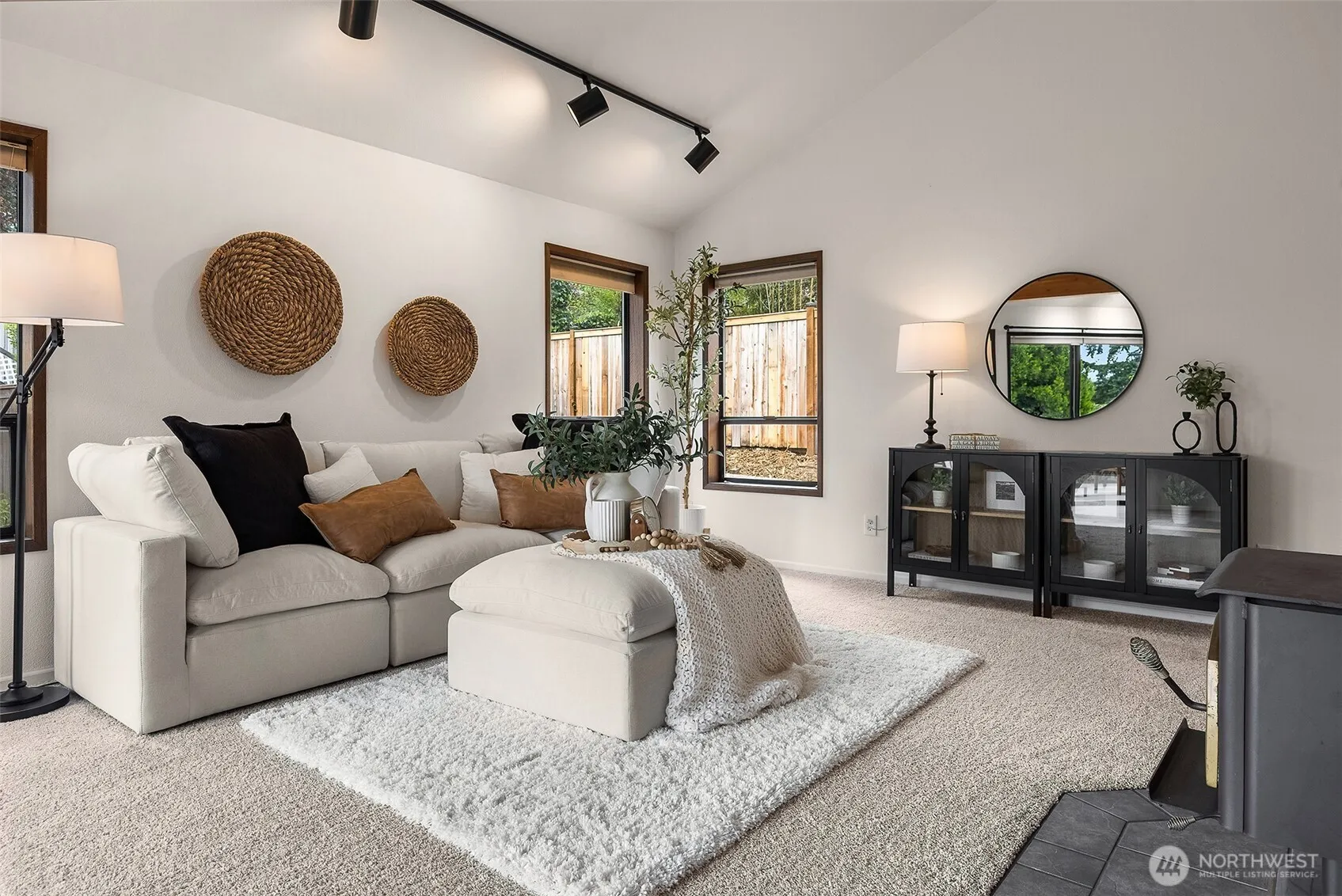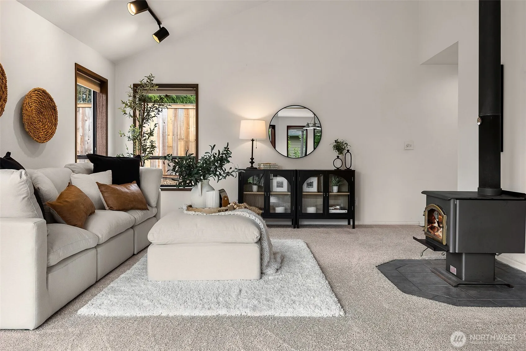 Dreamy in Duvall! You’ll LOVE the vaulted ceilings on BOTH floors. Enter via large covered porch to lofted main floor, with ½ bath, kitchen & HUGE partially covered composite deck. Cozy wood stove & laundry room on main. Upstairs, 3 bedrooms. Primary w/ 5 pc en suite bath, soaking tub & walk-in closet. Balcony off primary suite & 2nd bedroom. Territorial views from every room in the house! New paint, fencing, garage doors. Oversized garage with work benches and shelving. Stay cool w/ central A/C. Low maintenance yard. Exceptional location! Walk/bike to MSFT Connector, bus, grocery, shops, schools, parks, trails!