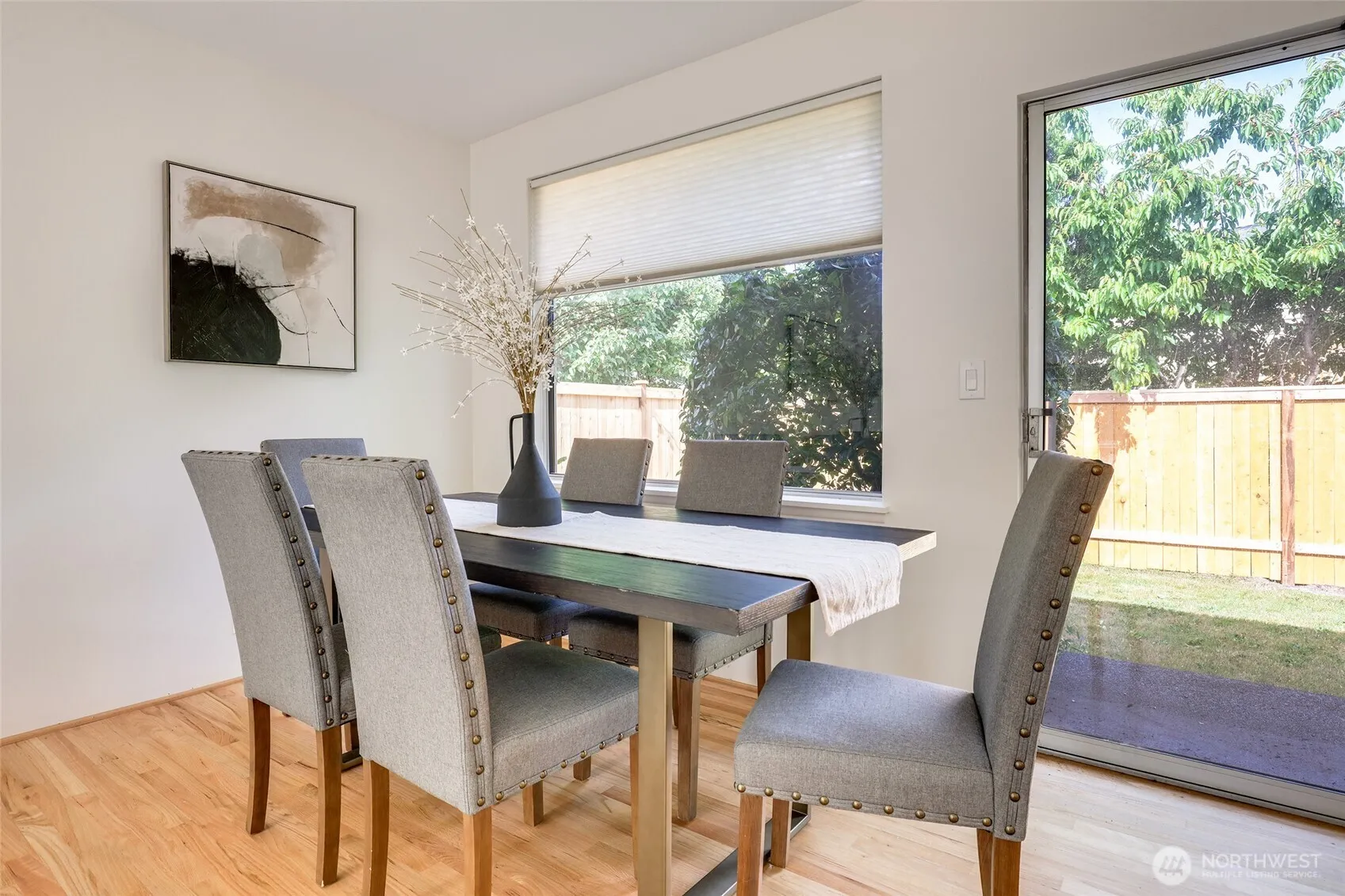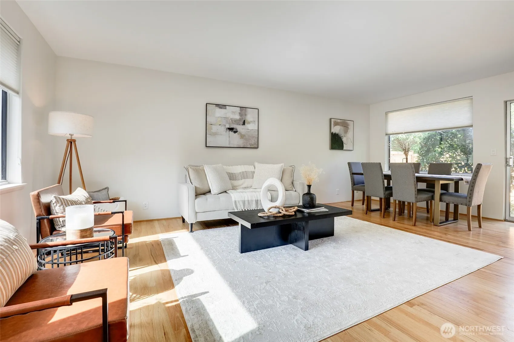 Tastefully Updated Mid-Century Rambler: 4 Bed / 2.5 Bath! This home blends modern upgrades with timeless character. Enjoy a spacious layout featuring a generous living room with a classic wood-burning fireplace, freshly refinished hardwood floors, and designer lighting throughout. The kitchen shines with brand-new stainless steel appliances, fresh interior & exterior paint adds crisp, clean finish. True primary with ¾ bath. Relax in the fenced backyard surrounded by lush, mature landscaping. Ample parking & a 2-car garage. Near Meridian Park Elementary, Cromwell Park, commuter routes, and new light rail. New 175th St Corridor Walk Route.