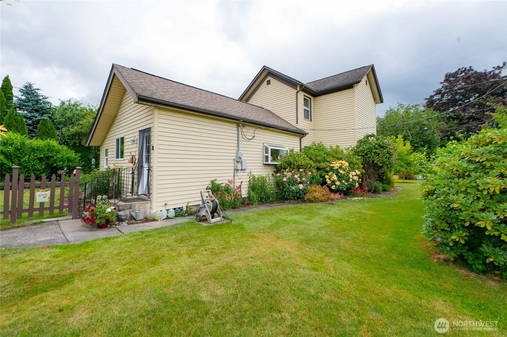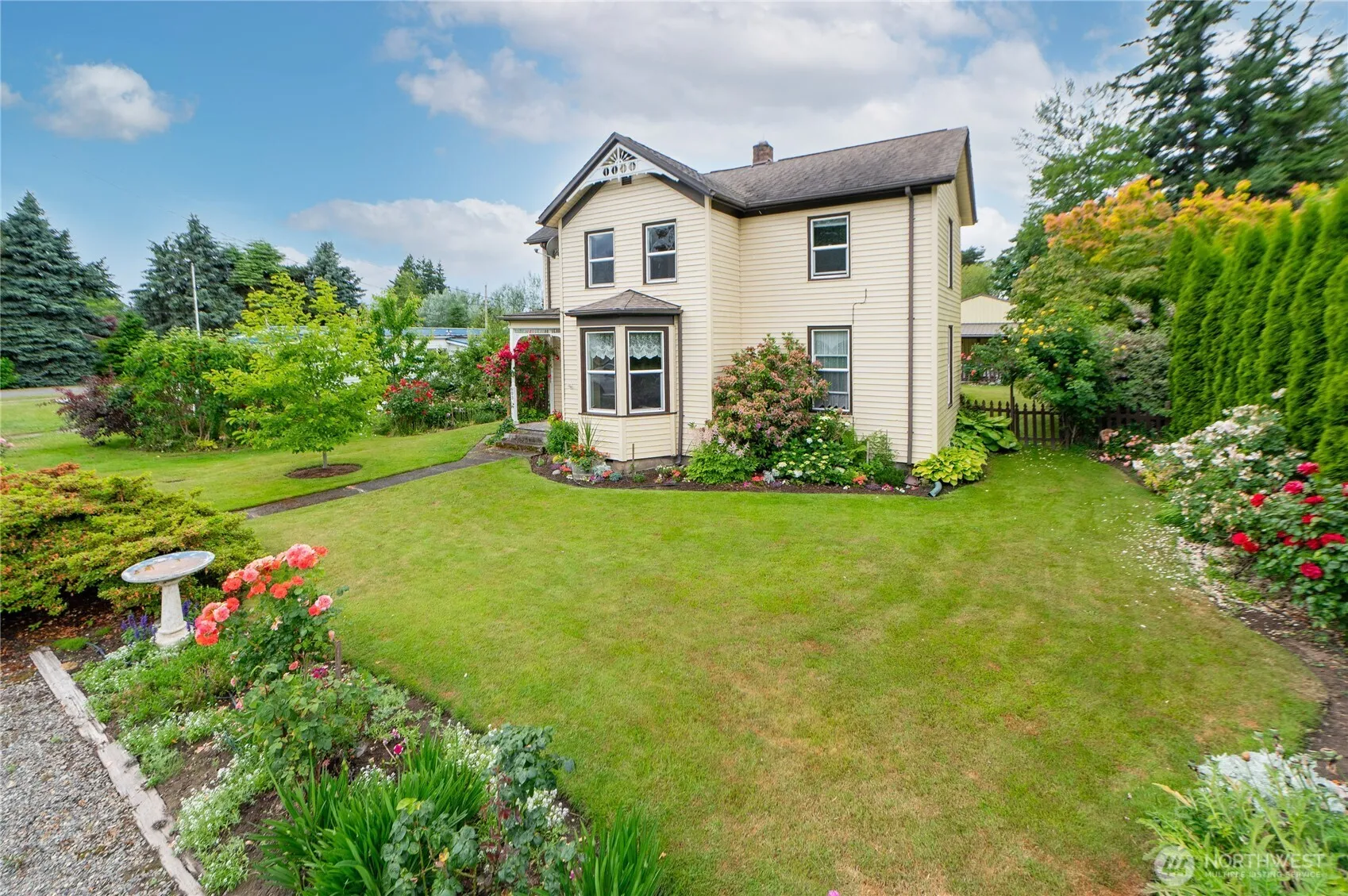Charming 19th Century Home with endless potential! This charmer is full of character and ready for your personal touch. Featuring 3 bdrms, 2.75 baths and 1968 SqFt on a 1/2acre lot. Main floor includes an open kitchen & breakfast nook, a bedroom, large mudroom and dining area. Upstairs, you will find two spacious bedrooms, a full bath and a versatile bonus room for an office or sewing space. Recent updates include rewiring, new insulation and drywall, and a furnace 5 years ago. The beautifully landscaped yard offers mature plantings and the 1299 SqFt shop with 3 bays, 220 power, 175 psi compressor plumbed in, workshop and loft perfect for projects or storage. A gas heater and insulation keep it cozy year-round. Out of the flood zone