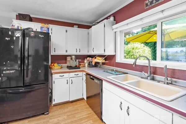 Mid-century modern charm meets lakefront living! This 3 bed, 2 bath home offers 1600+ sq ft of comfort with breathtaking views the sunsets are amazing while BBQ on the covered deck. New Deck with room for entertaining. Enjoy fishing or relaxing from your private dock, all just minutes from I-5, perfectly situated between Portland & Seattle. New WinCo and Home Depot just miles away! Tucked on a quiet dead-end street with RV parking, large garage, garden, and fruit trees—figs, apples, pears, and plums. Don’t miss the drone video—start making memories today!