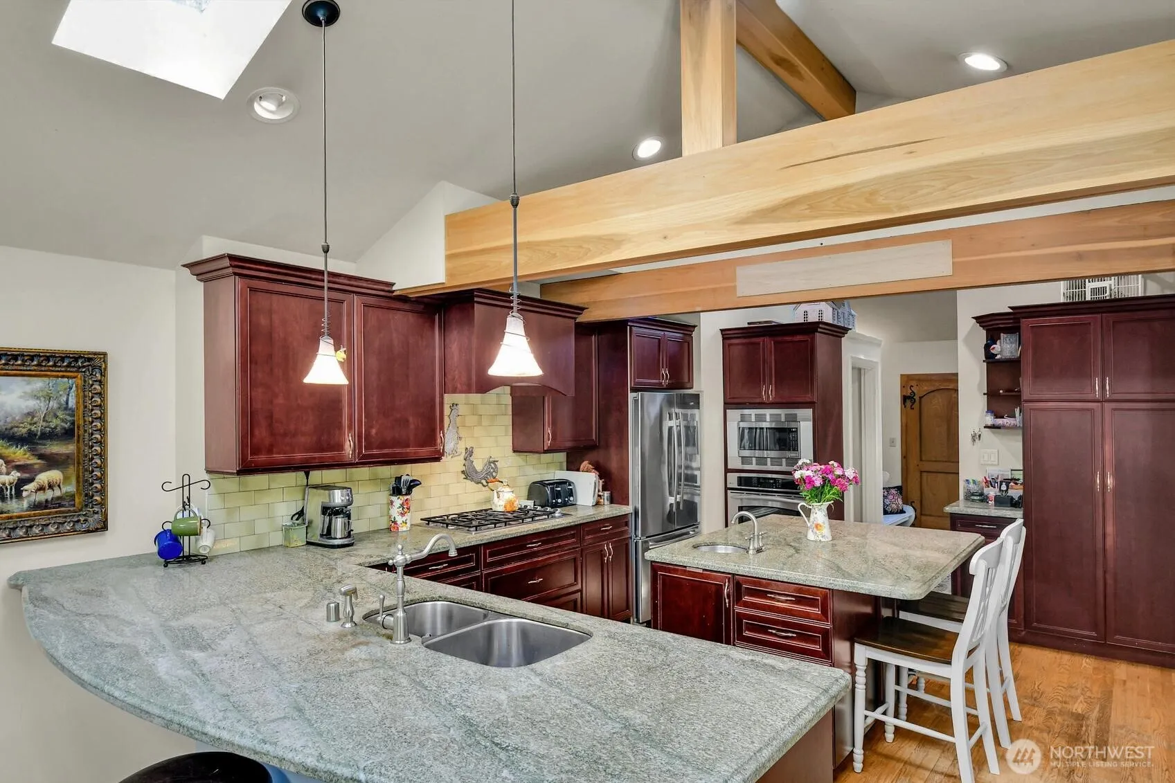 Located in the heart of Sheridan Heights this 4 bdrm 2.75 bth home is with-in the boundary to become an associate member of the private Sheridan Beach Club. Remodeled with a family room & kit addition but keeping in line with the charm & integrity of yesteryear. Primary bdrm is large with a beautiful marble bathroom,vaulted ceilings, cozy frplc & french doors that lead out to the lovely private back porch that overlooks the beautifully landscaped backyard. The enormous kitchen opens to the family room with vaulted ceiling’s, beams, skylights and French doors leading to the entertainment size deck. There are 2 bdrms on the upper level one that has French doors leading out to its own private deck. A 2 car garage completes this lovely home.