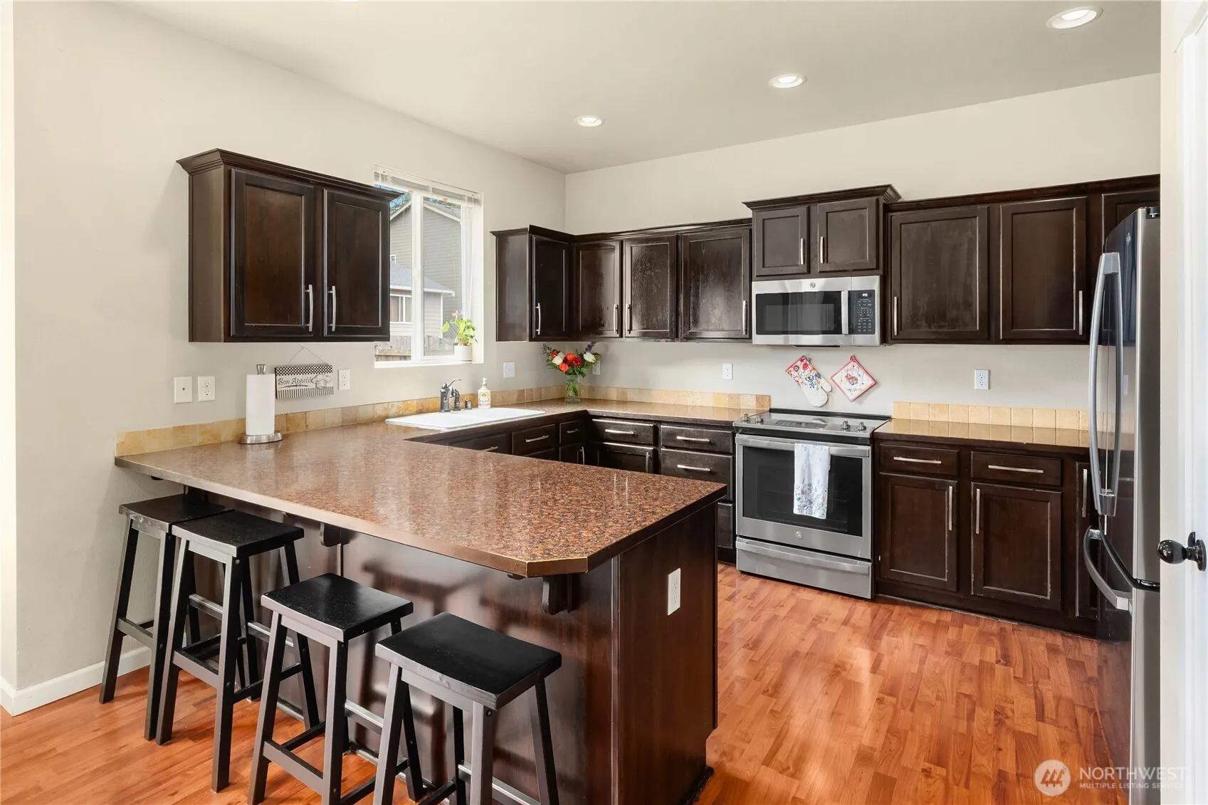The sweet spot – some homes invite you in to linger. From the rocking chair front porch, to the lush and private backyard this Winterwood Park home will win you over. 4 gracious bedrooms clustered together upstairs, a main floor office and a bonus room lend spaces for all. Kitchen upgraded with newer stainless appliances and loads of counter space. Dining open to the family room with fireplace and sliders to the lush backyard with entertaining space, roses, ornamental trees and level lawn. Primary suite with large walk in closet and bright bath. Upstairs laundry, fresh paint a two car attached garage with extra space for toys or treasures. Dead end street with multiple parks, trails and easy spring from location make this a must see value!