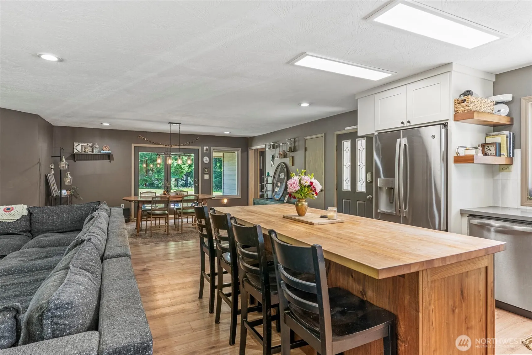 Looking for a move-in ready, one-level home with space to roam? This nicely updated home on 2 acres offers the perfect blend of comfort and convenience. Easy commute to I-5 and downtown Castle Rock. Featuring a spacious open-concept layout, ideal for gatherings and everyday living. The custom kitchen boasts a butcher block island, new appliances, ample cabinetry, flowing into a generous dining area.The home offers 3 bedrooms plus a bonus room with a separate entrance, perfect for a home office or business. Additional highlights include a walk-in pantry, heat pump, utility room, detached garage, outbuilding, paved driveway, covered patio, deck of primary & expansive yard to enjoy & play. Close in location with a country living feel.