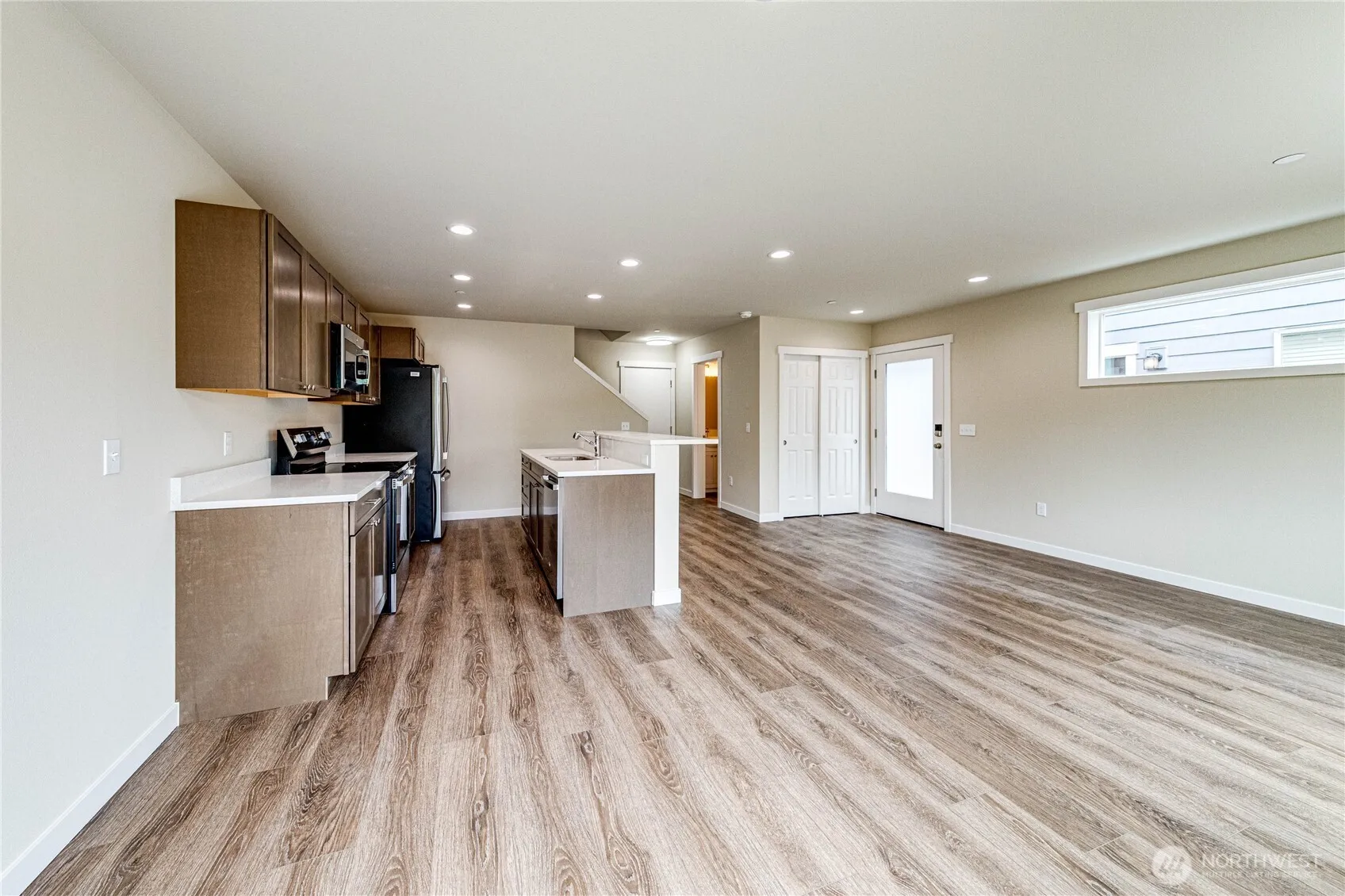 Discover modern living in this lovely new construction 2-story townhome! End unit on a quiet street with partial Mountain Views! Featuring durable and stylish vinyl plank floors throughout the main level, this home offers an inviting open-concept layout perfect for entertaining. The sleek kitchen boasts perfect quartz countertops and stainless steel appliances. Upstairs, you’ll find thoughtfully designed bedrooms and baths to complement your lifestyle. The spacious garage provides plenty of room for parking and storage. Conveniently located near shopping, dining, and recreation, this move-in-ready gem is waiting for you to call it home! Don’t miss out—schedule your showing today!