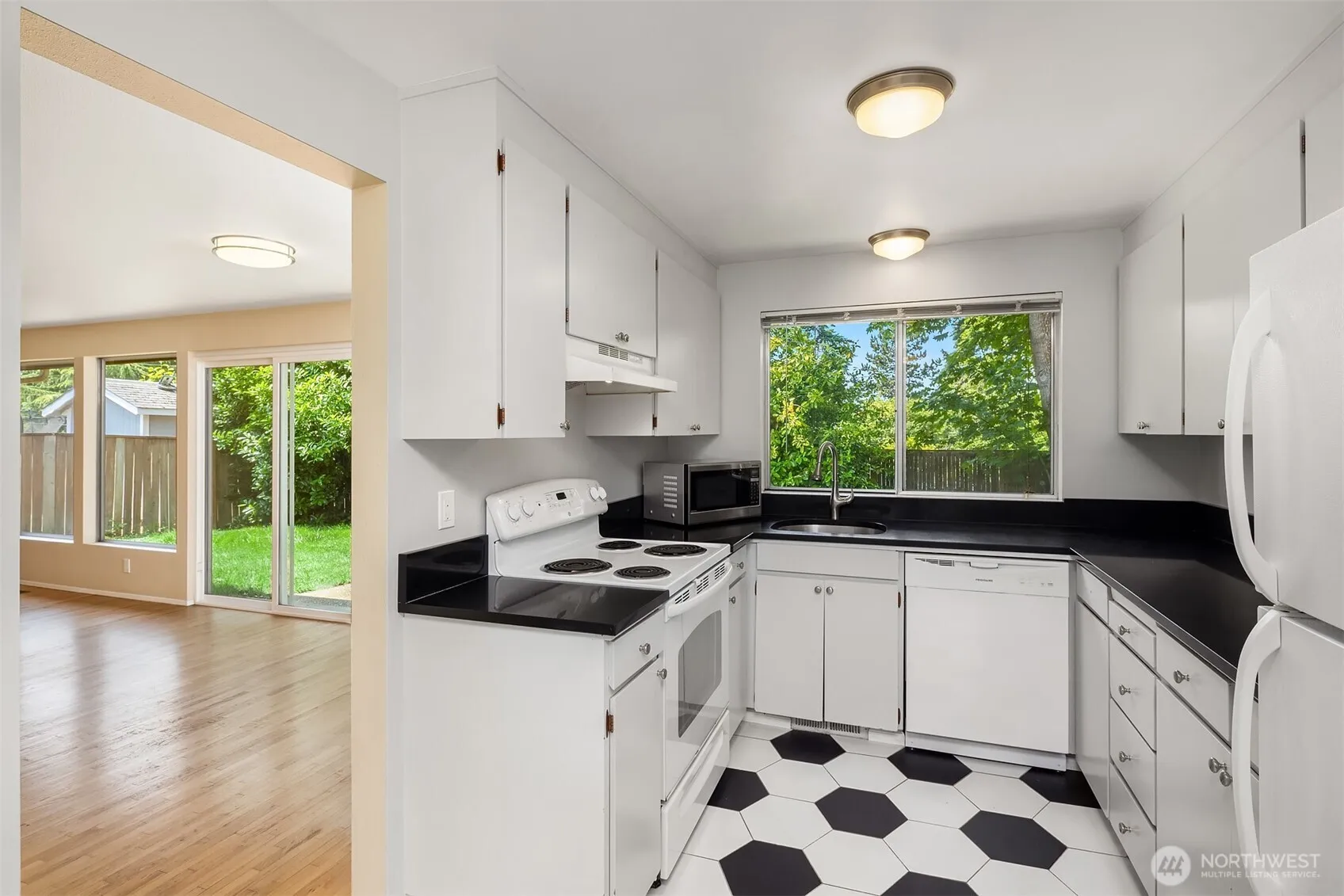 Opportunity knocks at this well-maintained rambler in a fantastic location near amenities and easy I-405 access! Step into an easy one-level layout that lives large with open living and dining areas, genuine hardwood floors, an inviting brick fireplace, and expansive windows bringing in light and natural scenery. Both bathrooms have been updated, including your private en-suite primary bath. Step out to the level, fully fenced yard surrounded by mature landscaping. Move right in or bring your creative eye and add your own additional upgrades. Just a stroll away from the elementary/middle schools and close to parks, trails, shops, & more. A smart investment for yourself or a rental!