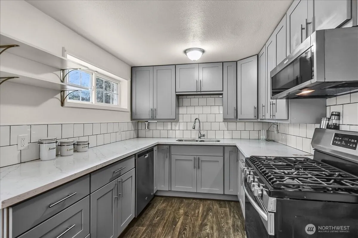 Charming and updated 3 bed, 1.75 bath rambler on a spacious corner lot! Enjoy a brand-new kitchen, stylishly updated bathrooms, and a fully fenced yard perfect for pets and play. The 2-car garage features durable epoxy floors, and there’s an 8×10 accessory building ideal for a home office or creative studio. Two attic storage areas with pull-down ladders offer added convenience. At the end of the home, a solarium greenhouse provides a peaceful space for gardening or relaxing year-round. Located minutes from the light rail, with easy access to I-5, Lake Ballinger, parks, top-rated schools, shopping, library, and more. This home offers the perfect balance of comfort, functionality, and unbeatable location! ADU potential Buyer to verify.