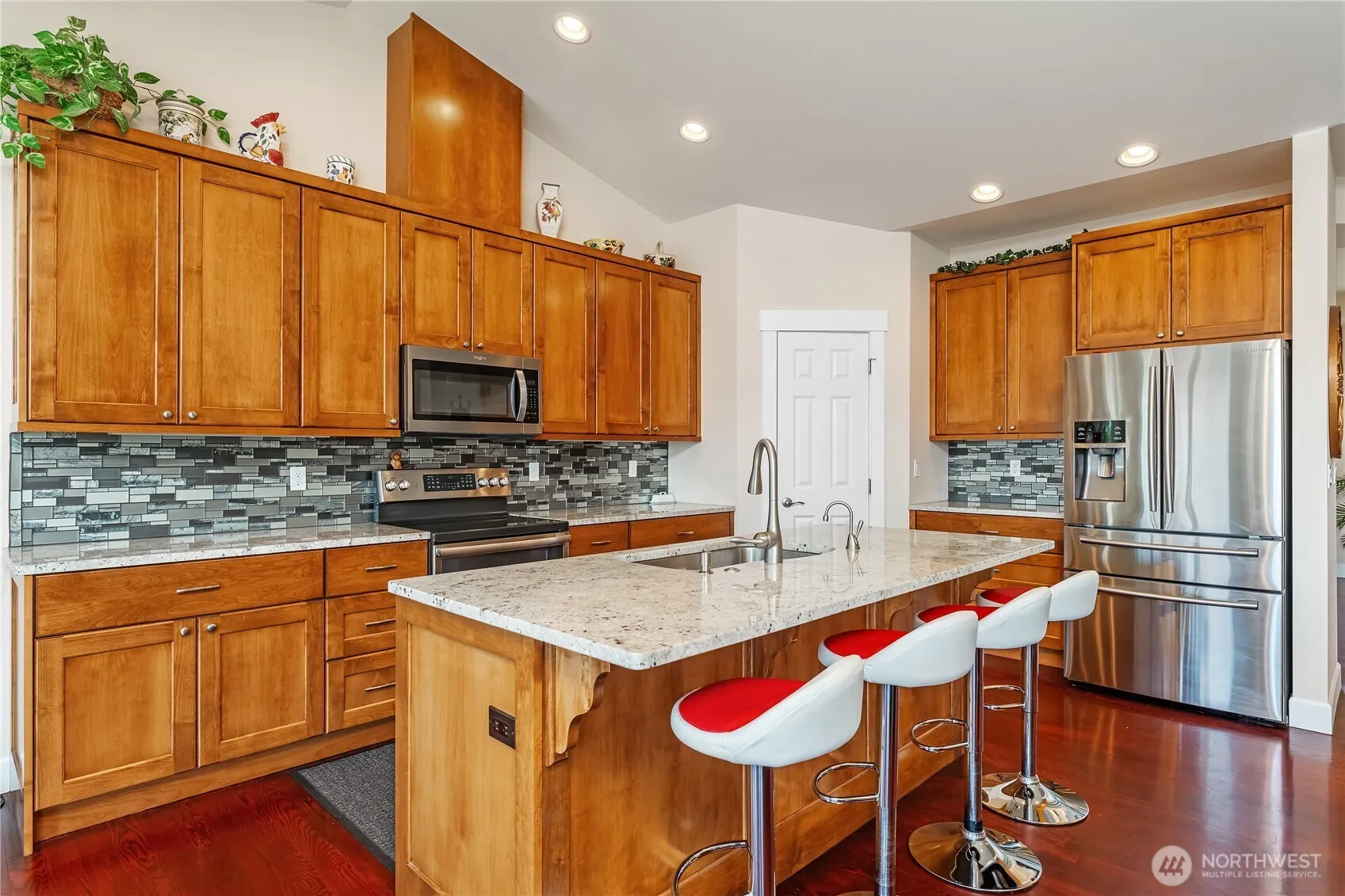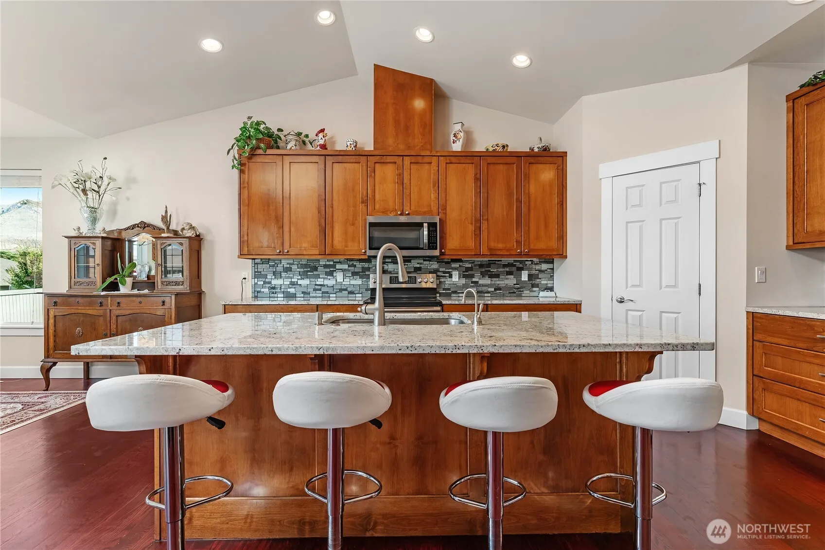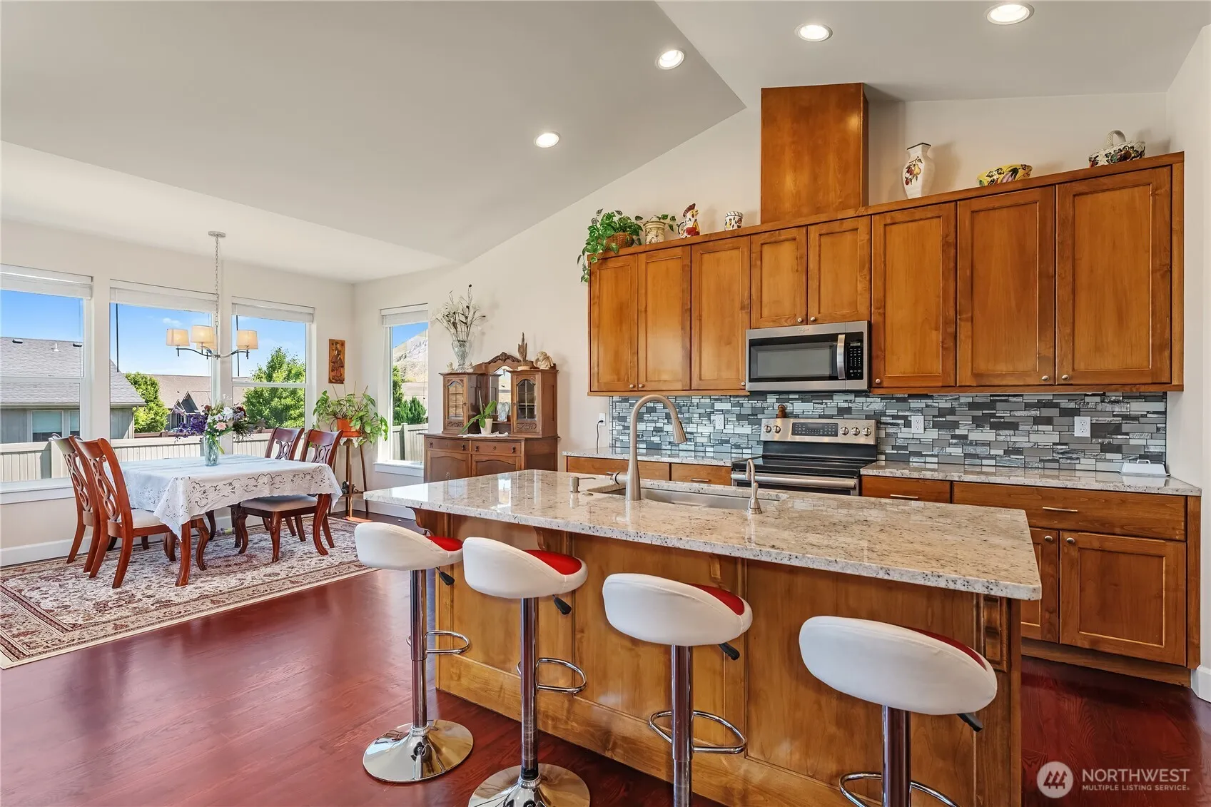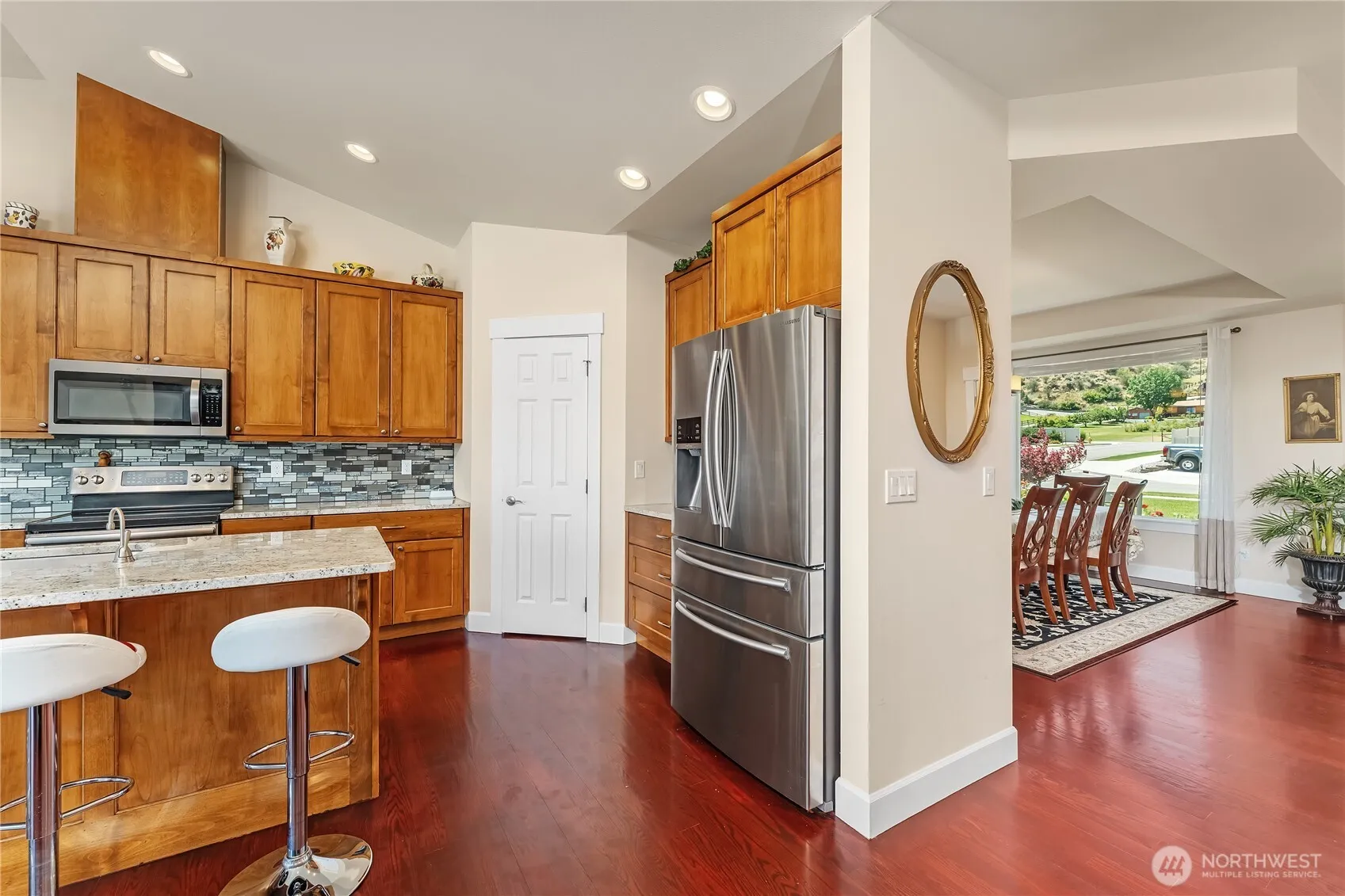 Beautifully maintained rambler ideally located on a corner lot near the base of iconic Saddlerock. Quiet & established neighborhood, this home offers unbeatable convenience – just minutes from Central Washington Hospital, local schools, downtown Wenatchee, hiking trail and other amenities. Open layout featuring a spacious living room, gorgeous kitchen with granite counters, dedicated dining, island seating & breakfast nook. Beautiful hardwood floors throughout living area. The primary suite includes a private bath, walk-in shower, double vanity & generous closet space. Outside, enjoy a fully fenced backyard and patio perfect for summer barbecues, gardening, or relaxing. Plenty of room in the 2 car garage for vehicles and additional storage.