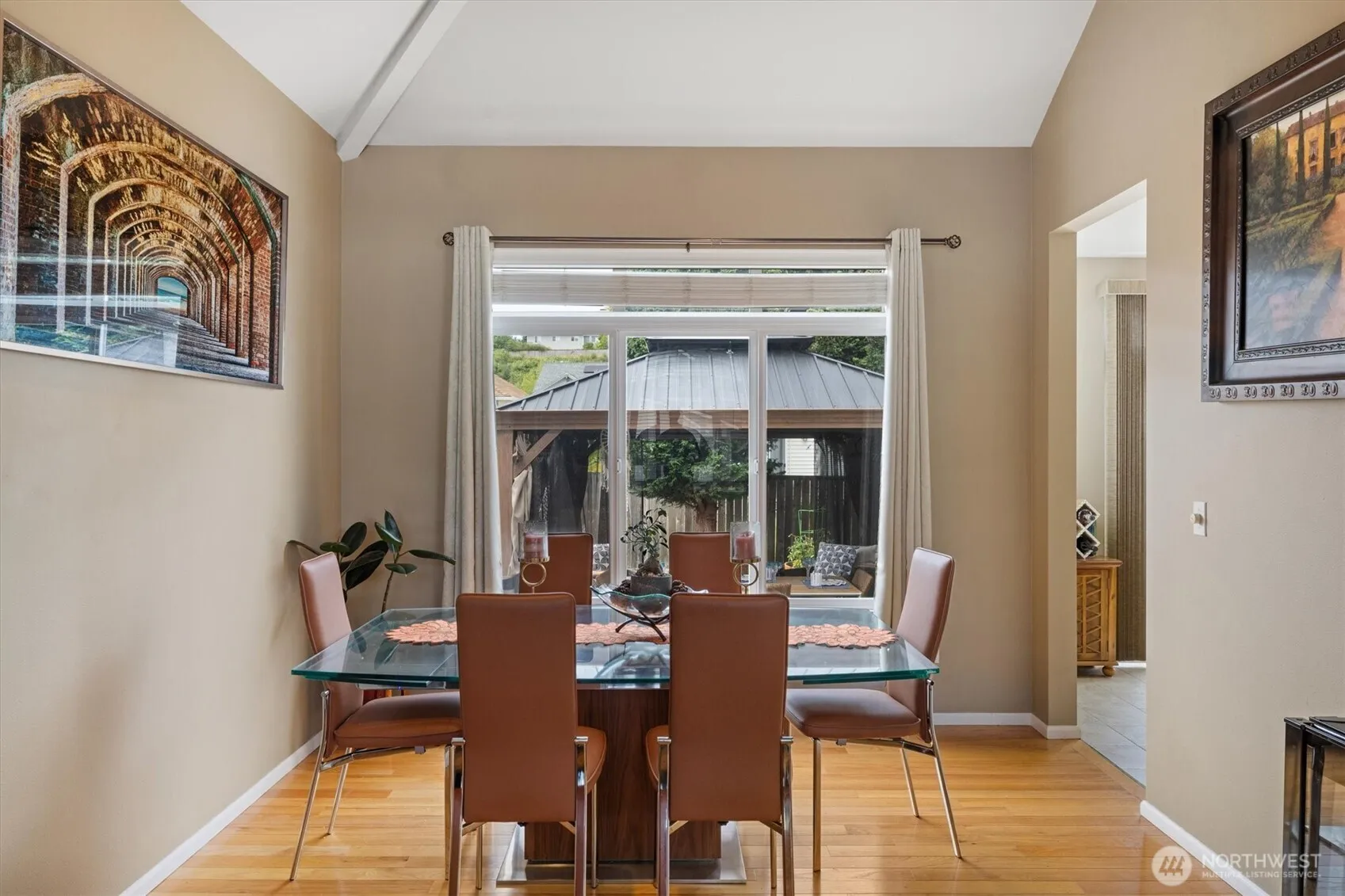 Beautifully maintained home in University Place offers a perfect blend of comfort & sophistication. Enjoy elegant hardwood floors & vaulted ceilings in both the living & dining rooms, creating a spacious & airy atmosphere. The expansive kitchen features heated floors, quartz countertops, & direct access to the patio—ideal for indoor-outdoor living & entertaining. A second living area includes a gas fireplace, large windows that invite natural light, & custom built-in shelving. The generously sized primary suite includes a private en suite bathroom, providing a serene retreat. Step outside to a private backyard oasis complete with a gazebo, perfect for outdoor gatherings. A spacious two-car garage with epoxy flooring!