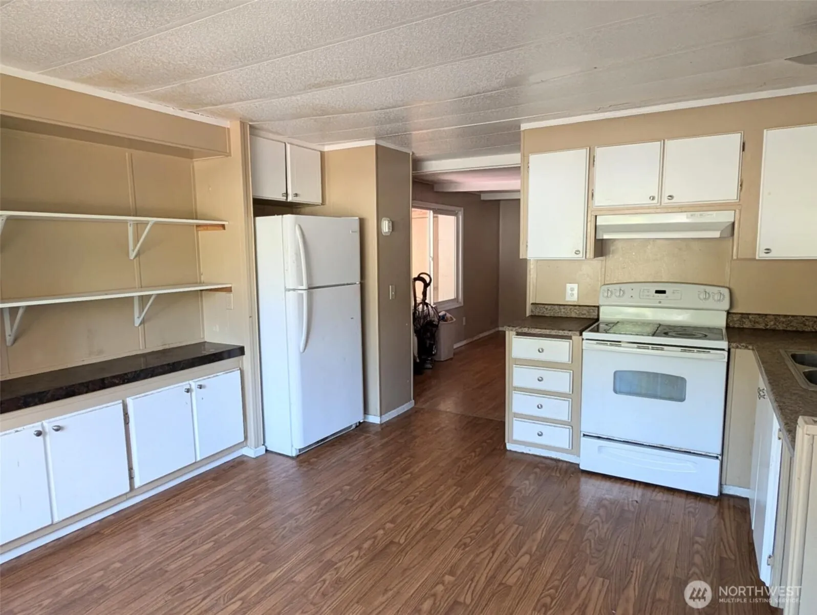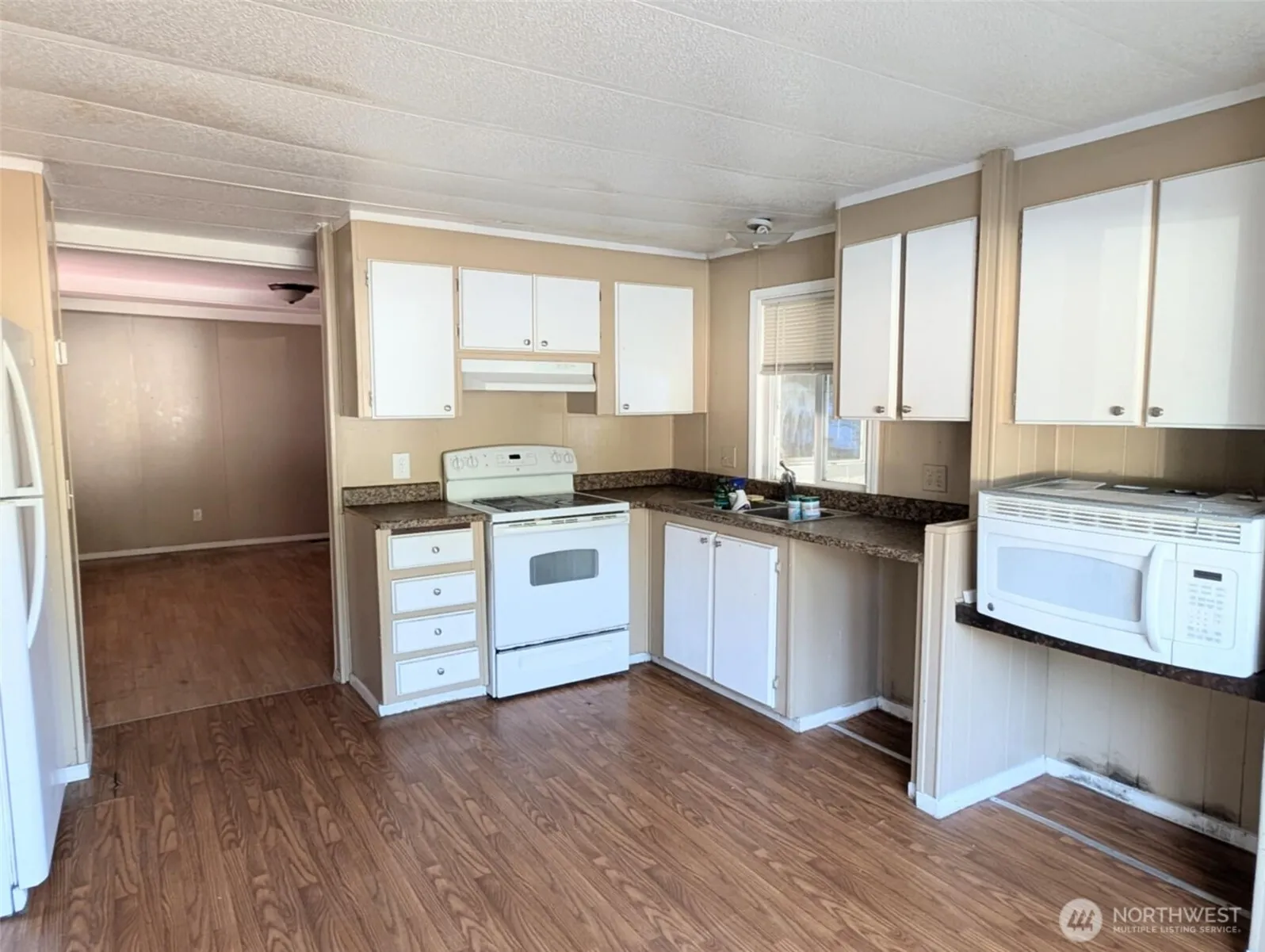 FIXER-UPPER located in the Greenwood Mobile home Park! This home has a great potential but needs lots of TLC and is being sold AS-IS. Included is a closed off back porch as well as a covered front porch with an extra closed off room to store all your outside gear. Although a shared yard, it is fenced and includes a little storage shed as well!