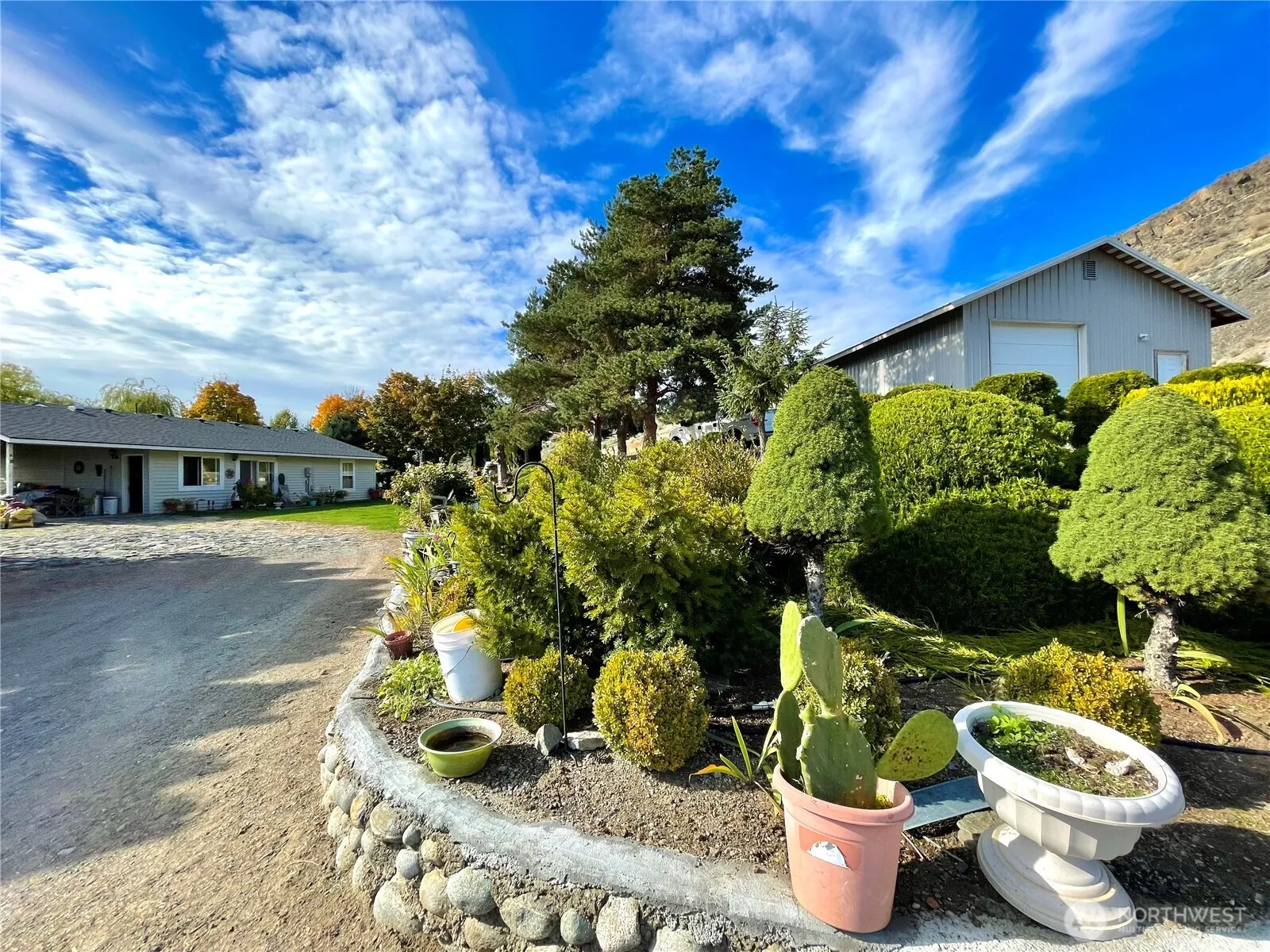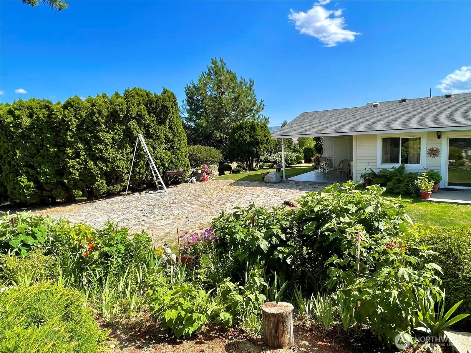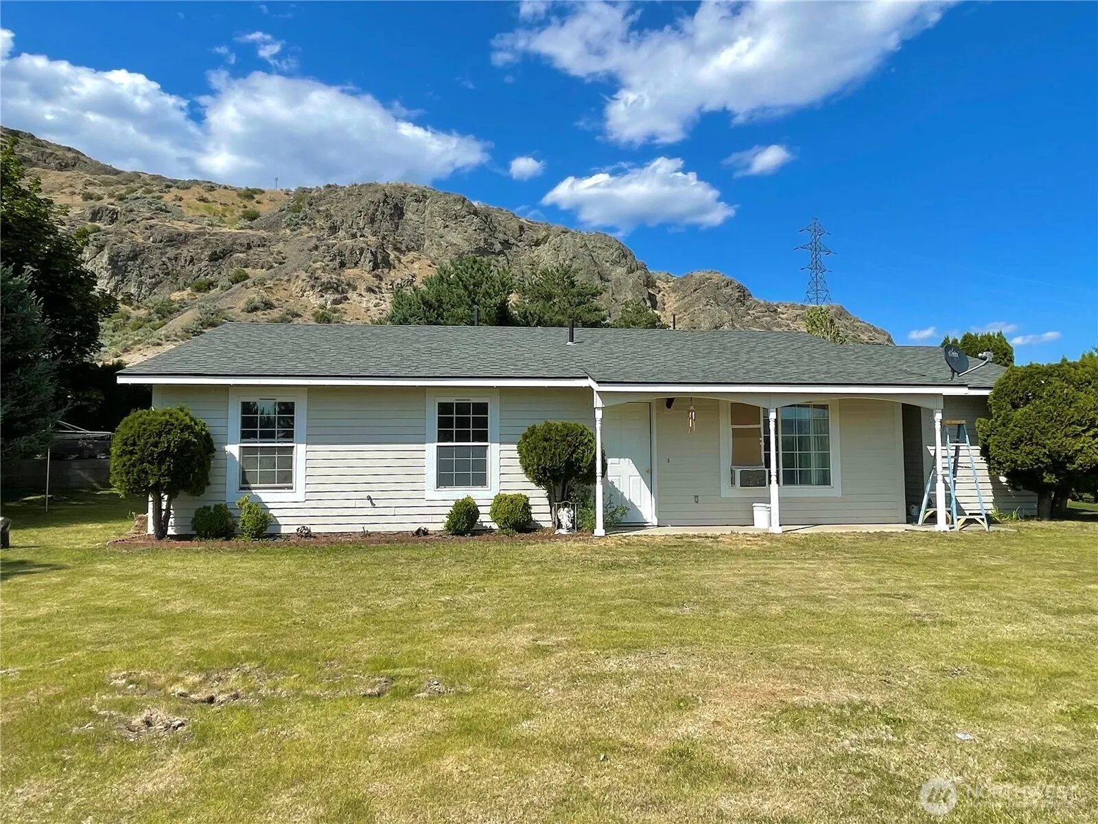 OMAK-PEACEFUL, PRIVATE & SECLUDED 3 bed, 1.5 bath home on 3.5+ acres! Extensive kitchen w/all appliances, propane stove, breakfast bar, adjacent dining area w/utility closet, sliding doors for patio access. Spacious living room; door leading to the backyard w/panoramic views. Primary en-suite w/half bath. Storage thru-out. Beautiful mature landscaping, shade trees & large flower bed w/ perennials create a vibrant scenery. Plenty of space for entertainment. Generous parking space for guests, trailer or toys. Attached 288 sf carport. Plus, detached 720 sf garage w/power & bonus rm. Quiet location out of town yet minutes to all city amenities! Shared well – Copple Rd Water Assoc $25/month. OID $247.81/yr. Septic. $379,900. MLS-2395362/H-3686