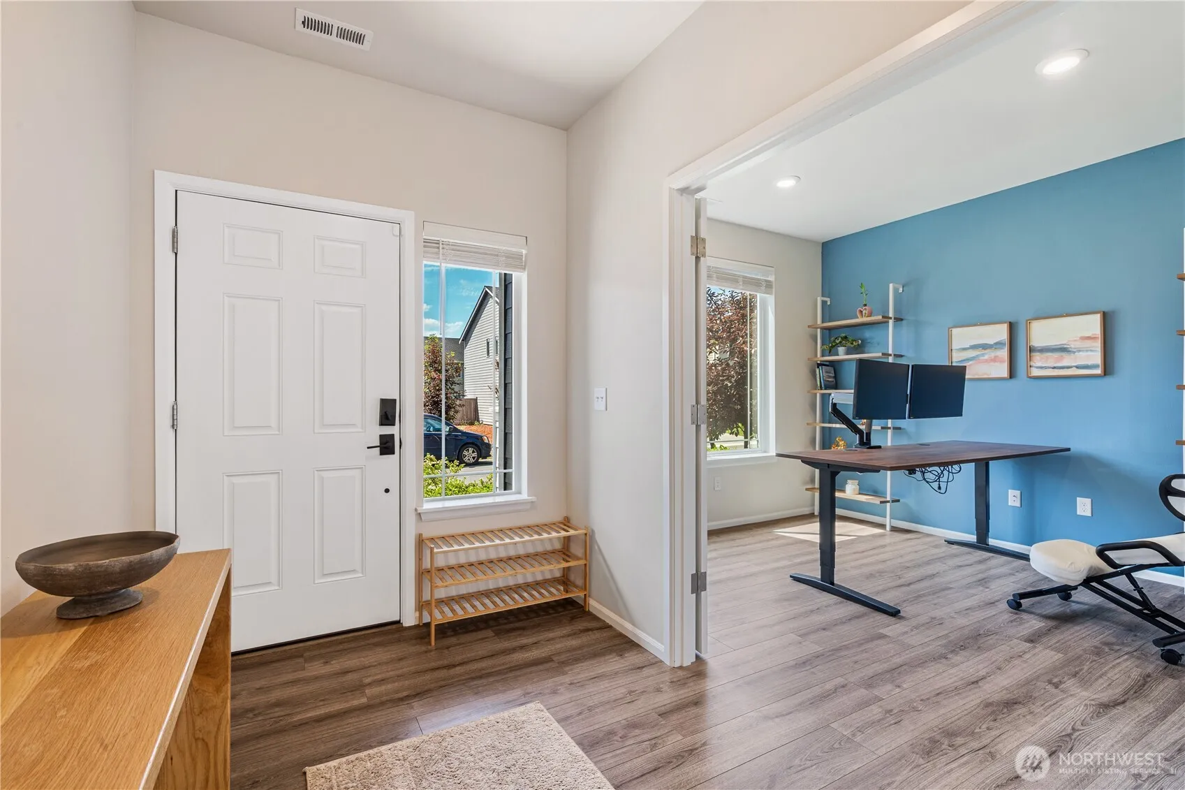 Stunning south-facing Davenport floorplan on a quiet dead-end street in desirable Wyndham Highlands. Enjoy 10-ft ceilings and a bright, open layout. The kitchen boasts white cabinetry, marbled quartz counters, and a walk-in pantry. The main floor features a spacious great room with gas fireplace flanked by custom cabinetry and a den with built-in bookshelves. Upstairs offers a large bonus loft, upgraded dry bar, and laundry near guest rooms. The luxurious primary suite includes blackout drapes, spa-like 5-piece bath, and massive walk-in closet. Relax year-round on the covered patio with propane fireplace. Level-2 EV charger in 2-car garage, central A/C, and smart stairwell blinds add comfort and style. A refined home in a tranquil setting.