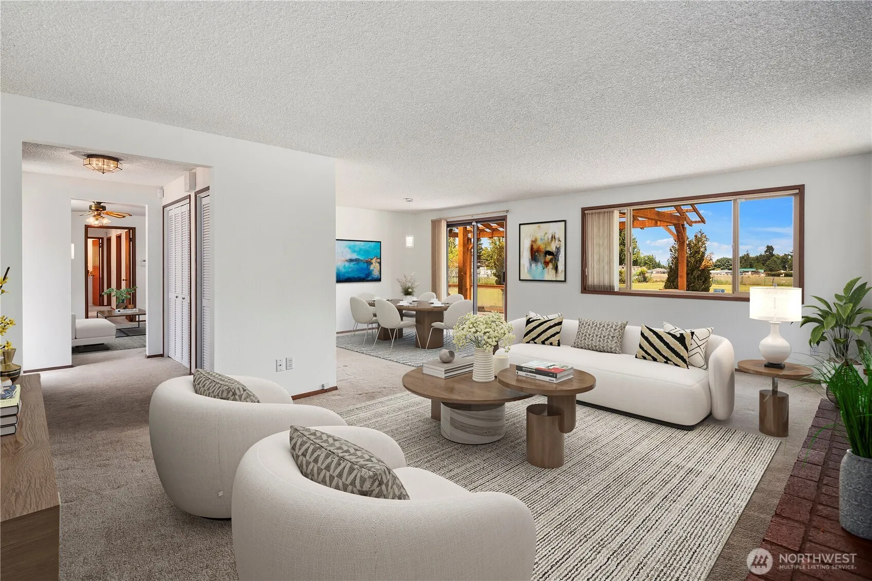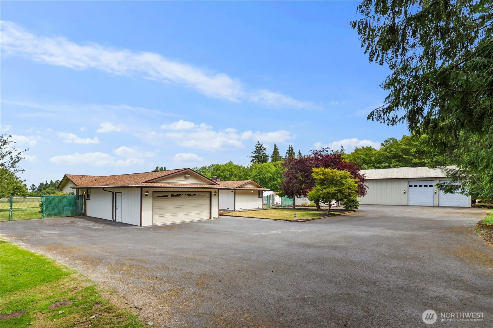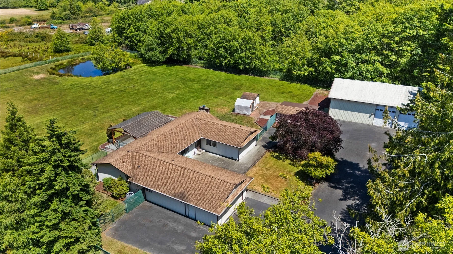 Welcome to your private oasis-This spacious 4 bed, 2.25-bath rambler offers over 2000 square feet of thoughtfully designed one-level living—blending comfort and functionality. Tucked away on shy 2 acres of landscaped grounds, this home is a true retreat from the everyday. Step inside to spacious layout that seamlessly connects casual living and features a new heat pump A/C. The well-equipped kitchen boasts modern appliances and generous counter and storage space. Outdoors, enjoy the tranquility of your private pond, covered patio and multiple outbuildings. The impressive 1700+ sqft detached shop is perfect for hobbies, workshop, or storage. This property offers the rare blend of privacy, utility, and charm and close all the areas amenities!