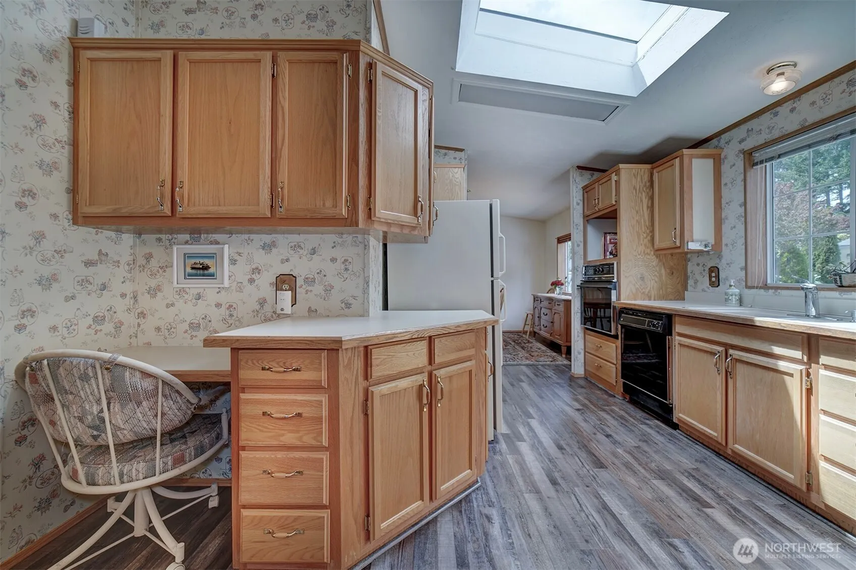 Welcome to this lovely move-in ready 3-bedroom-1777 sq ft. home in Viking Park, Poulsbo’s favorite 55+ park. Prime corner lot with mature colorful landscaping, this home offers comfortable living with an open floorplan and plenty of natural light from large windows and skylights. Enjoy new luxury vinyl flooring in the main living areas. The spacious primary suite features vaulted ceilings, walk-in closet, ensuite bath with walk-in shower, and excellent storage. The kitchen is generously sized—large enough for several people to be cooking and socializing together. A large paved driveway offers extra parking for your guests. A workshop space is a bonus. Find this peaceful and friendly neighborhood just minutes from historic downtown Poulsbo.