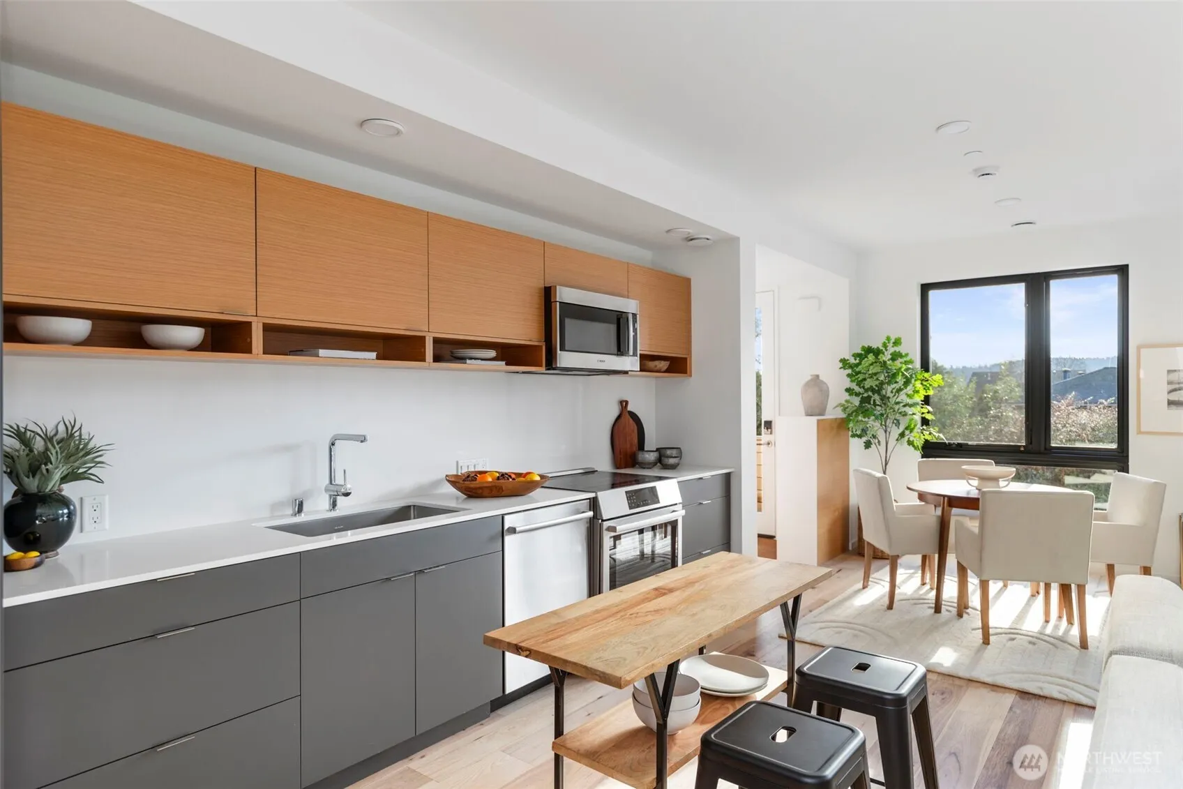 Modern luxury meets sustainable living in this 5-Star Built Green home, designed for those seeking an intentional lifestyle. Nestled in nature but moments from vibrant downtown, this urban oasis offers tranquility & convenience. Enjoy easy access to eateries, shops, galleries, cafes & a peaceful ferry ride to the city, making car-free living a breeze. The home balances serenity w/ modern style, featuring sleek wood finishes, hardwood floors, vaulted ceilings, rooftop decks & expansive windows. Community gardens, bonfire pits & trails enhance the living experience, fostering connection & belonging. W/ efficient and healthy systems, EV-ready parking & solar-ready features, it’s the perfect place to live & work, near parks & top-rated schools.