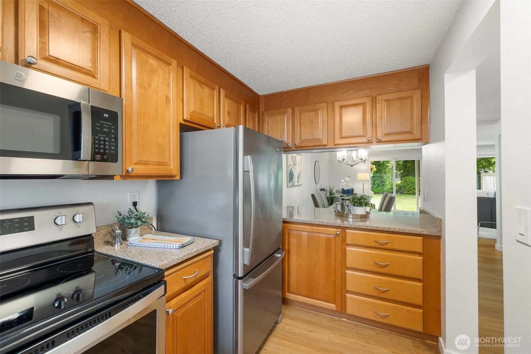 Elegance meets comfort in this beautifully updated 2bed, 1.25 bath gem, nestled in a quiet greenbelt setting within the UP School District. Positioned in what many consider the top location in all of Bridgeport Park Estates! The open concept main level flows to a private patio and serene landscaped yard. New flooring throughout, freshly painted, updated kitchen & baths, new stylish lighting and modern hardware. 2 spacious bedrooms feature private deck access and generous closets, including a huge walk-in! Attached garage + 2 parking spots makes living here a dream. HOA just completed a new roof and covers water, garbage, exterior ground maintenance and pest control. Minutes away from parks, shopping & cool eats. Pets welcome. Pre-inspected.