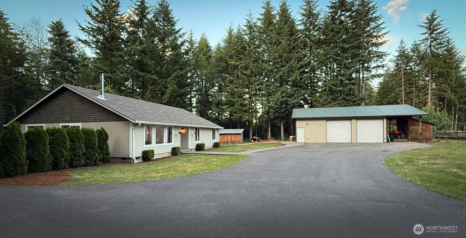 Here is your chance! Are you seeking 5 acres of serenity, seclusion with a shop? How about fenced raised beds ready to roll? This 4 BR (3BR w/ Office & Closet) & 2BA is nestled in a park like setting amongst the trees. The private lane takes you back to a secluded development of nice homes and excellent neighbors. Light CCR’s w/ no HOA make living here a dream. Bring on the chickens and animals! The large 36×32’ shop has a concrete floor, water plumbed & provides 32×10’ of separate covered RV space with 220 power. Midway between Portland & Seattle and about 10 minutes off I-5, the only asphalt you will crave to see will be your own driveway! (GPS as Darcy Rd). Relax, thrive and grow right here, right now! Let’s make a deal!