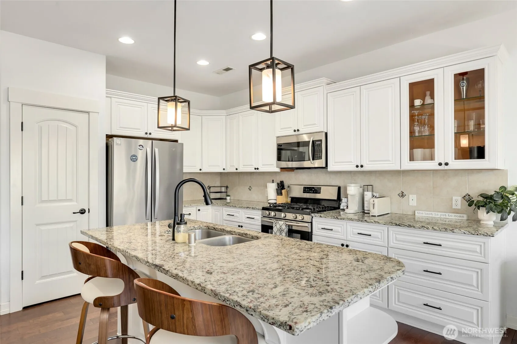 Welcome to your Tumwater retreat! This impeccably maintained 2-story home blends quality, comfort, and style. A bright, open layout features a gas fireplace and connects to the gourmet kitchen with a large island and upgraded stainless steel appliances. With 4 bedrooms plus a den, a spa-like primary suite, and an upstairs laundry, convenience is built in. Designer touches, a modern newer entry door, and thoughtful upgrades throughout elevate the space. Enjoy the corner lot on a cul-de-sac with a fully fenced yard, covered patio, and natural gas BBQ hookup. Steps from Munn Lake and the community playground—this is Northwest living at its best!