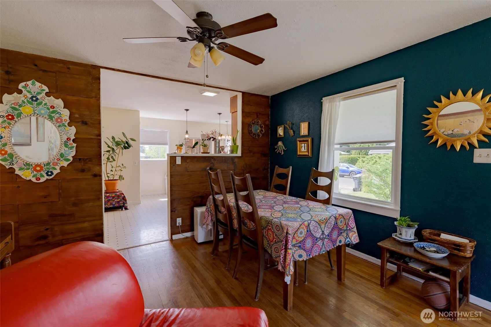 Charming 1948 home on a spacious lot, located on a quiet street and surrounded by mature trees—including a weeping cherry—rose bushes, and thornless blackberry. Fresh exterior paint, hardwood floors, and stylish tile in the bathrooms highlight the home’s character. Remodeled basement perfect for multi-generational living. Bedroom windows overlook a park-like backyard, ideal for birdwatching, relaxing, or entertaining. Enjoy a basketball court, built-in storage, convenient kitchen with newer appliances, and space for barbecues or gatherings. Includes a single-car garage and private well for watering the yard.