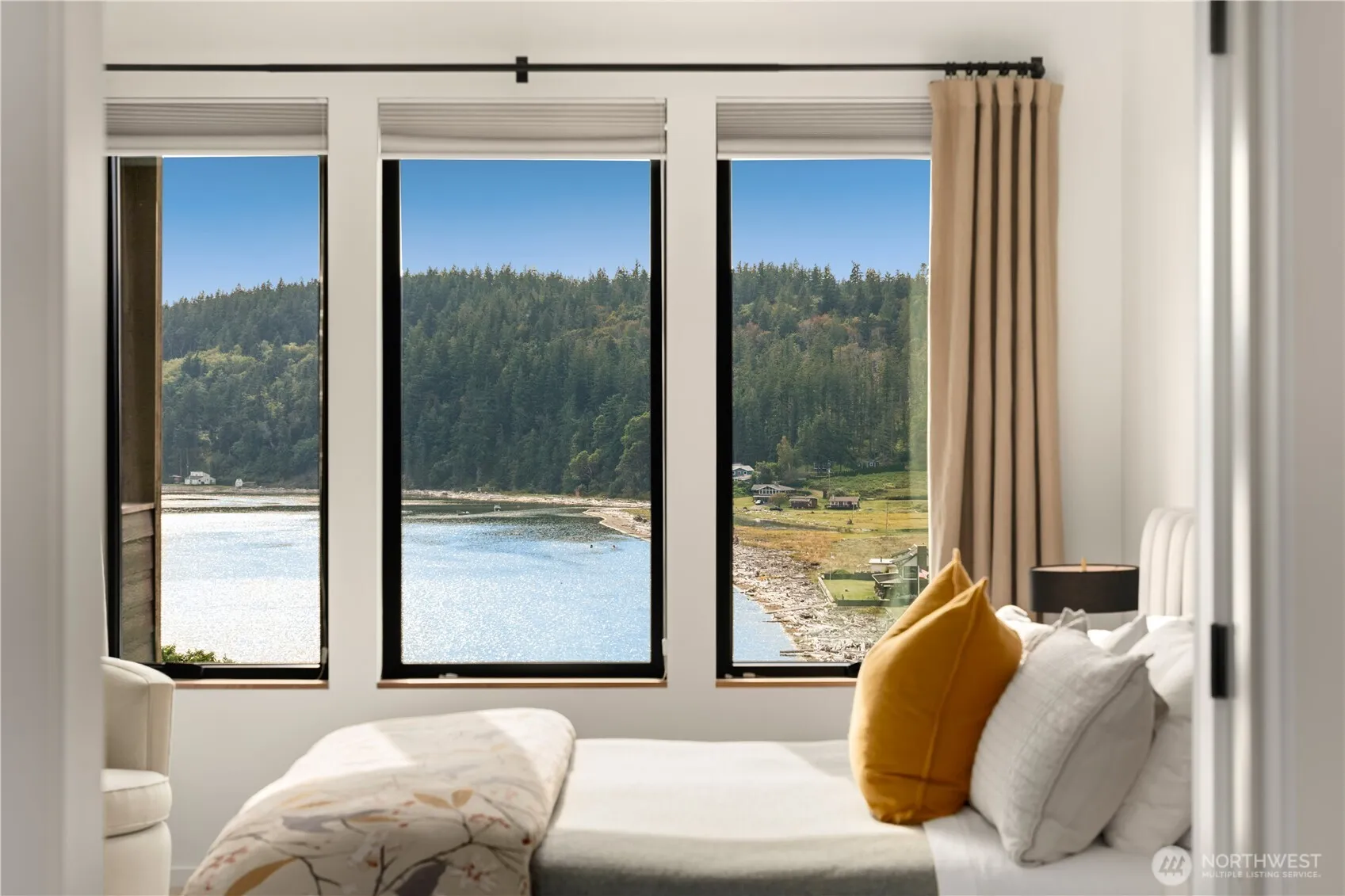 Single level living at its finest! Discover unparalleled coastal elegance in this custom-built daylight rambler, with unobstructed Elger Bay views and private beach access. Watch bald eagles soar from the primary bath, and hear whales spy-hopping from your living room. Enjoy stunning sunsets from nearly every room. With a blend of nature and luxury, finishes include hardwood floors, 100% wool carpets, and a gourmet Thermador kitchen with a built-in fridge and custom cabinetry. The primary suite boasts breathtaking views, a spa-like bath, and a walk-in closet. Generous 2-car garage, with additional spaces outside. A rare blend of elegance, and comfort, set in quintessential Pacific Northwest beauty!