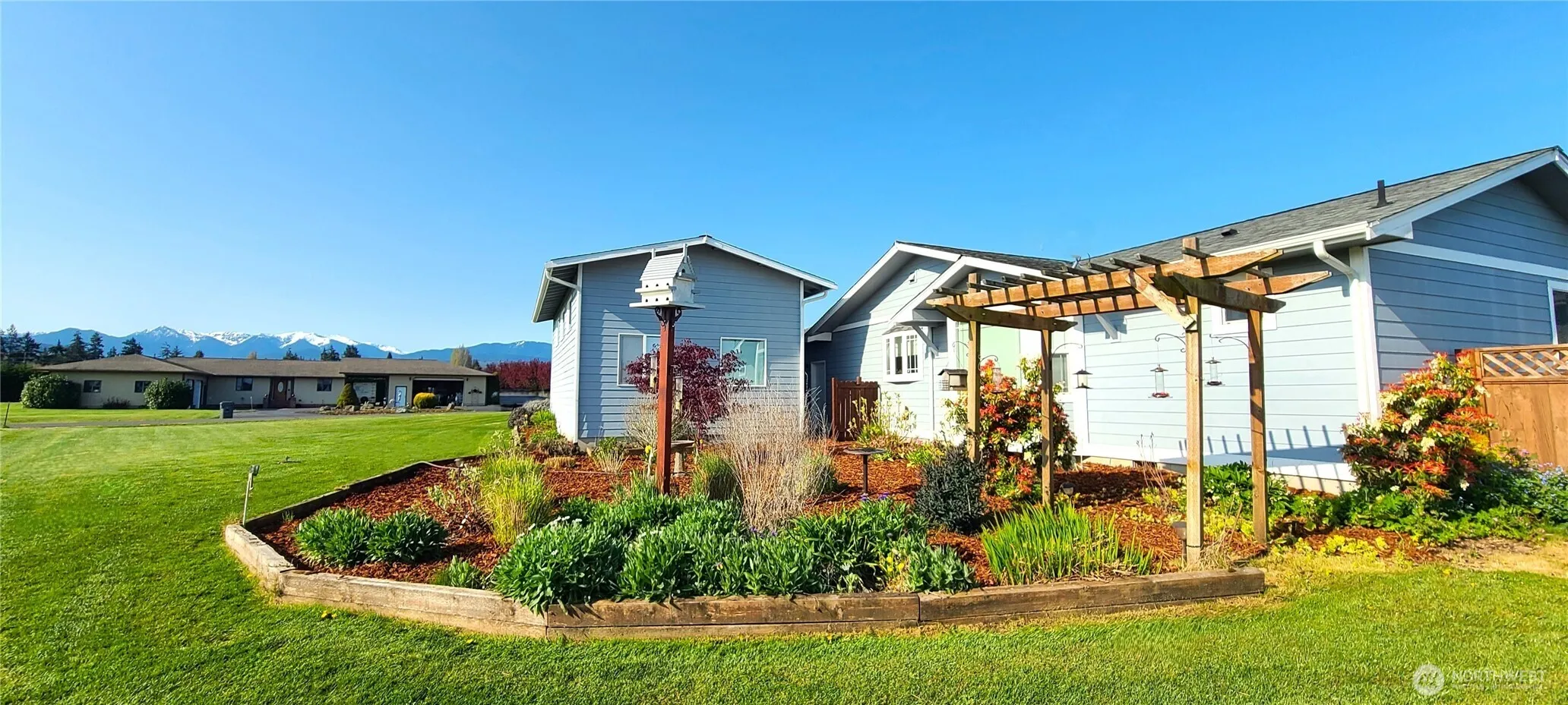 Beautiful contemporary spacious home with 2 primary suites, stunning great room, and fantastic mountain view! Well-designed kitchen with Corian counters, newer appliances, and slide out drawers. Excellent neighborhood location close to town on dead end street! Take in the beautiful mountain view and manicured landscaped e-z care grounds from the sunroom with southern exposure. Vaulted ceilings, jetted tub, new carpet, and light filled rooms throughout! Lavender lined drive and private fenced rear yard. 18×32 heated/finished RV garage w/14′ tall door and 16′ ceiling, 12×16 storage shed, garden spaces, pressurized irrigation and sprinkler system!