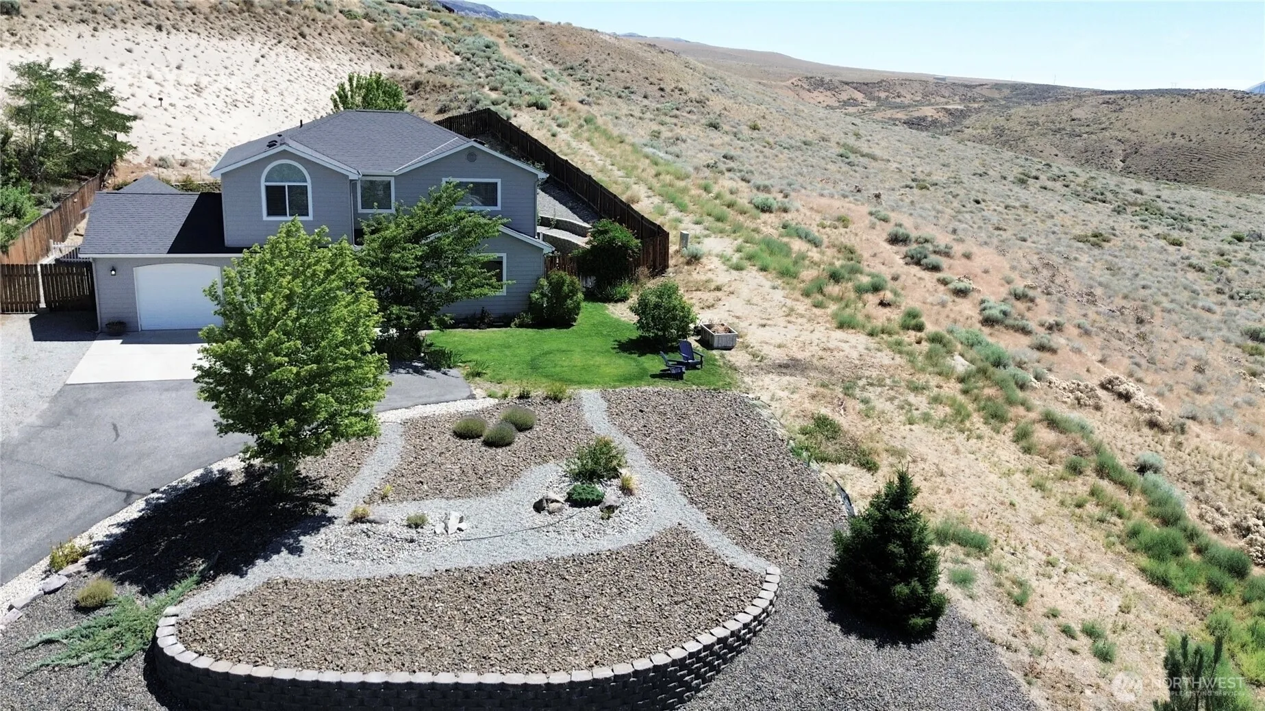 Experience East Wenatchee living at its best! This 4-bed, 2.5-bath, 2,180 sq ft home sits on a rare 0.73-acre lot with breathtaking valley and mountain views. Sun-filled open spaces create a warm, inviting atmosphere, while the kitchen connects easily to dining and entertaining areas. The spacious primary suite offers a peaceful retreat with scenic outlooks. Step outside to enjoy an expansive patio, and an organized garden ready for your touch. The property features privacy, a well-maintained, climate-friendly landscaping that enhances curb appeal while keeping maintenance low. RV parking adds extra convenience. Perfectly located just minutes from local recreation, this home combines everyday comfort with stunning scenery.