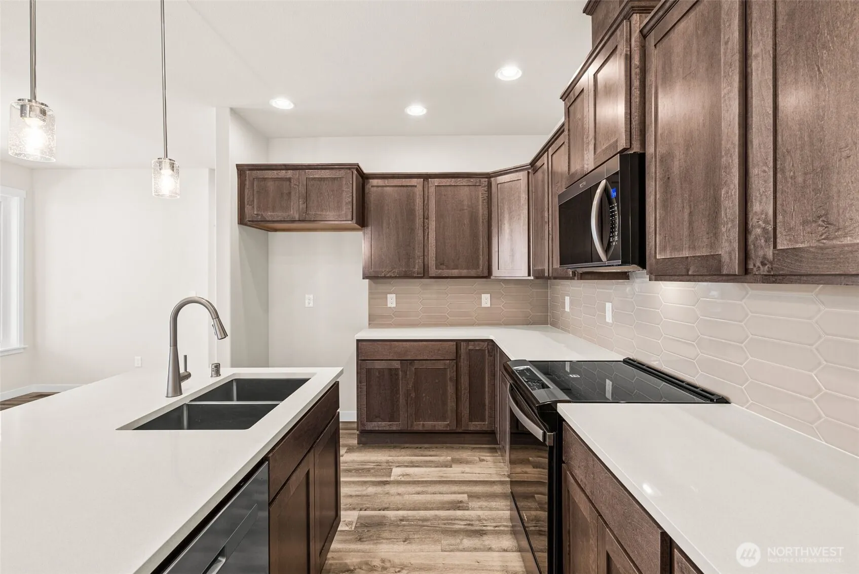 Rob Rice Homes new construction in Skyview Estates offers the ideal easy living experience in this patio home! The 1951 Cypress plan features 3 bedrooms/2.5 baths + loft. The kitchen boasts elegant ‘Charcoal’ Maple cabinets, quartz counters, a full tile backsplash, and luxury vinyl plank throughout the main living area + quartz counters throughout. Upstairs, you’ll find a loft and all the bedrooms, including a primary suite featuring a walk-in closet, 5 pc. bath with quartz counter tops, tile floors and a soaking tub. The contemporary finishes and meticulous attention to detail are evident throughout. Low maintenance living w/spacious partially covered side patio, and front yard irrigated & maintained by the HOA.