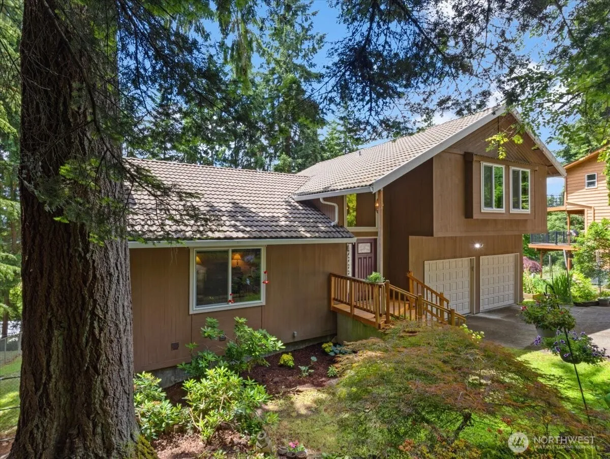 Tucked down a private, adventurous driveway, this Longview retreat offers peace just minutes from PeaceHealth St. John’s and downtown. Enjoy a landscaped garden, birdfeeders, and lush greenery. Inside features include cathedral ceilings, a wood-burning fireplace, spacious dining, and a bright kitchen with granite counters, double oven, and pantry. The family room opens to a cedar deck for relaxing or entertaining. Upstairs: a light-filled primary suite, 2 beds, and 2 baths. The daylight basement offers a wet bar, 2 beds, bath, and a second deck—perfect for guests or MIL suite. Bonus: heat pump (2023), tile roof, vinyl windows, hardwood floors, utility shed, garden beds, and 2-car garage with extra parking.