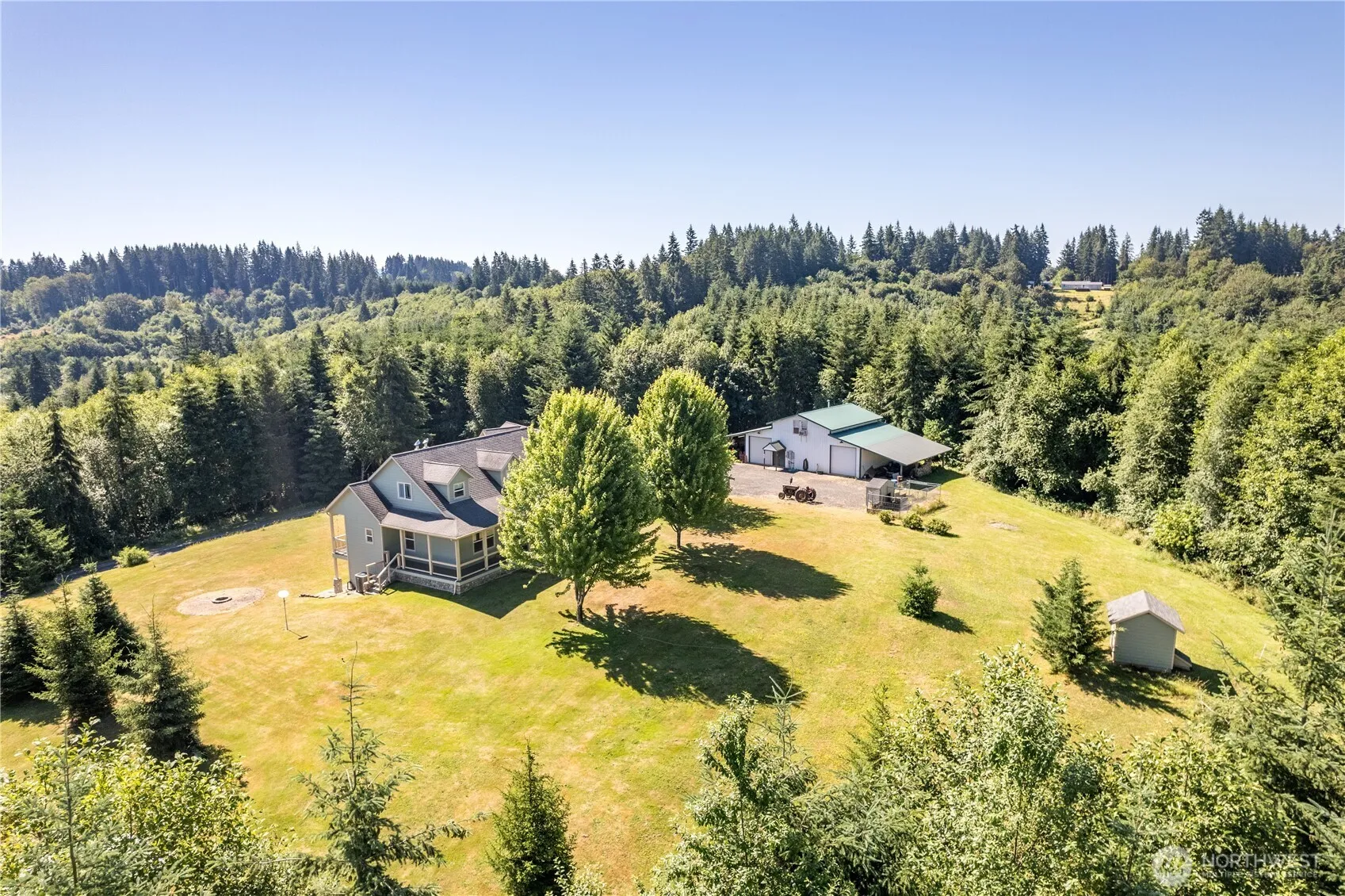 Pacific Northwest multigenerational living! Large luxury farmhouse kitchen with stainless steel appliances and granite countertops. Main-level primary suite with bathroom and two large closets. Huge basement living space with office/den/bedroom option with a walk-in safe; rough plumbed kitchenette for potential separate living quarters. Separate HVAC zoning for each level, central vacuum, and basement safe room. Detached 2-car garage with storage loft. Separate 1,728 sq. ft. shop with 2 bed, 1 bath living space above. Fruit trees, garden area, chicken coop. Equipped with Starlink Internet; new owner can take over equipment. Option to keep the llama, if wanted. This property has so much to offer. Call your agent today for a viewing!