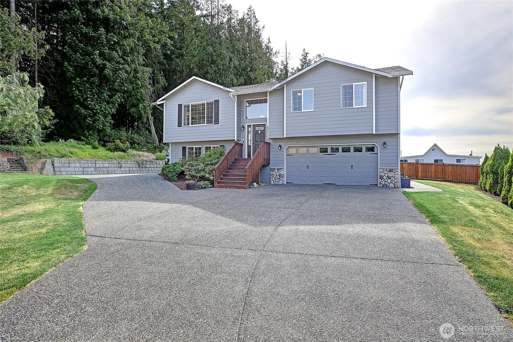 VIEW Listing in the Heart of Cedarhome! Beautiful Puget Sound Western-Views, Privacy w/ Forested Land Adjacent. Massive Parking and Large, Bright Home in Excellent Condition! Open and Vaulted Main Room w/ Gas Fireplace. Huge VIEW deck with stairs to private patio and private, quiet yard. 4 Bed/3 Bth including primary-suite with views, dbl vanity bath & W/I closet. Lower Bonus/rec room plus private bedroom/bath. Deep garage w/ Xtra shop space. Gas furnace & new water heater. Oversize RV parking paved and clean, easy access. Big patio, garden space and fire-pit. Private location w/ established neighbors, sidewalks and parks… yet minutes to schools, shopping, services and I-5. Rare to find an established, large/private lot…Welcome Home!