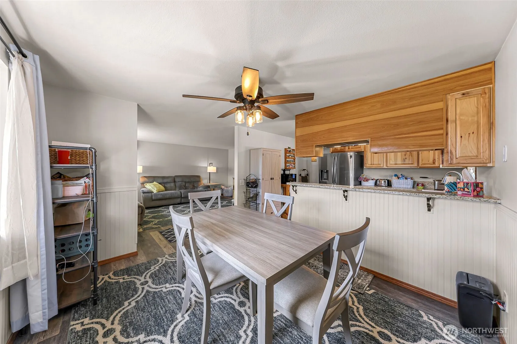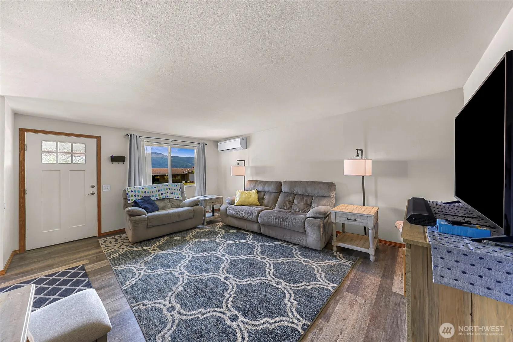 Welcome to your sun-powered sanctuary in the heart of Everson! This beautifully updated rambler blends modern comfort with effortless charm. Freshly painted and truly move-in ready, the home features a bright living room that flows seamlessly into an updated kitchen with dining space—ideal for everyday living and entertaining. Enjoy energy-efficient living with solar panels and mini-split A/C units throughout, providing year-round comfort and sustainability. The home features three well-sized bedrooms, each filled with natural light and ample storage. Step outside to your private, fully fenced backyard oasis. A charming front porch welcomes guests, while the expansive back deck is perfect for BBQs, lounging, and multiple outbuildings.