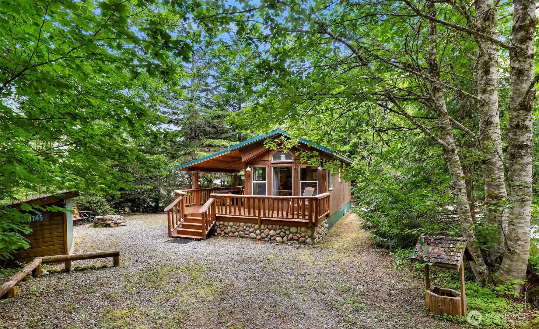 What a gem! Nestled in the Cascade foothills is the Lake Tyee RV resort community is this 12′ x 37′, 1 bedroom, 1 full bath NW cabin-style model featuring updated interior with newer cabinetry, butcher block countertops with stainless sink, pinewood flooring, propane cooking, vaulted ceilings, pendant and recessed lighting, large covered deck, fire pit and shed for extra storage. This amazing community offers 2 heated pools, hot tubs, club house, cabanas, laundromat, a lake that is stocked quarterly, putt-putt golf and park with beach area. to see how cool this community is!!