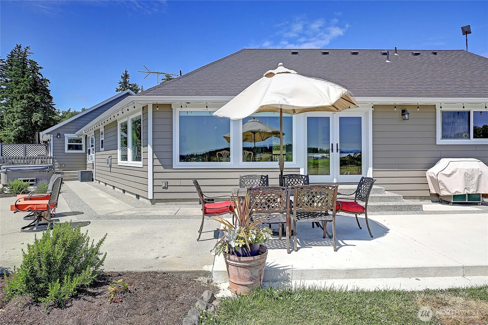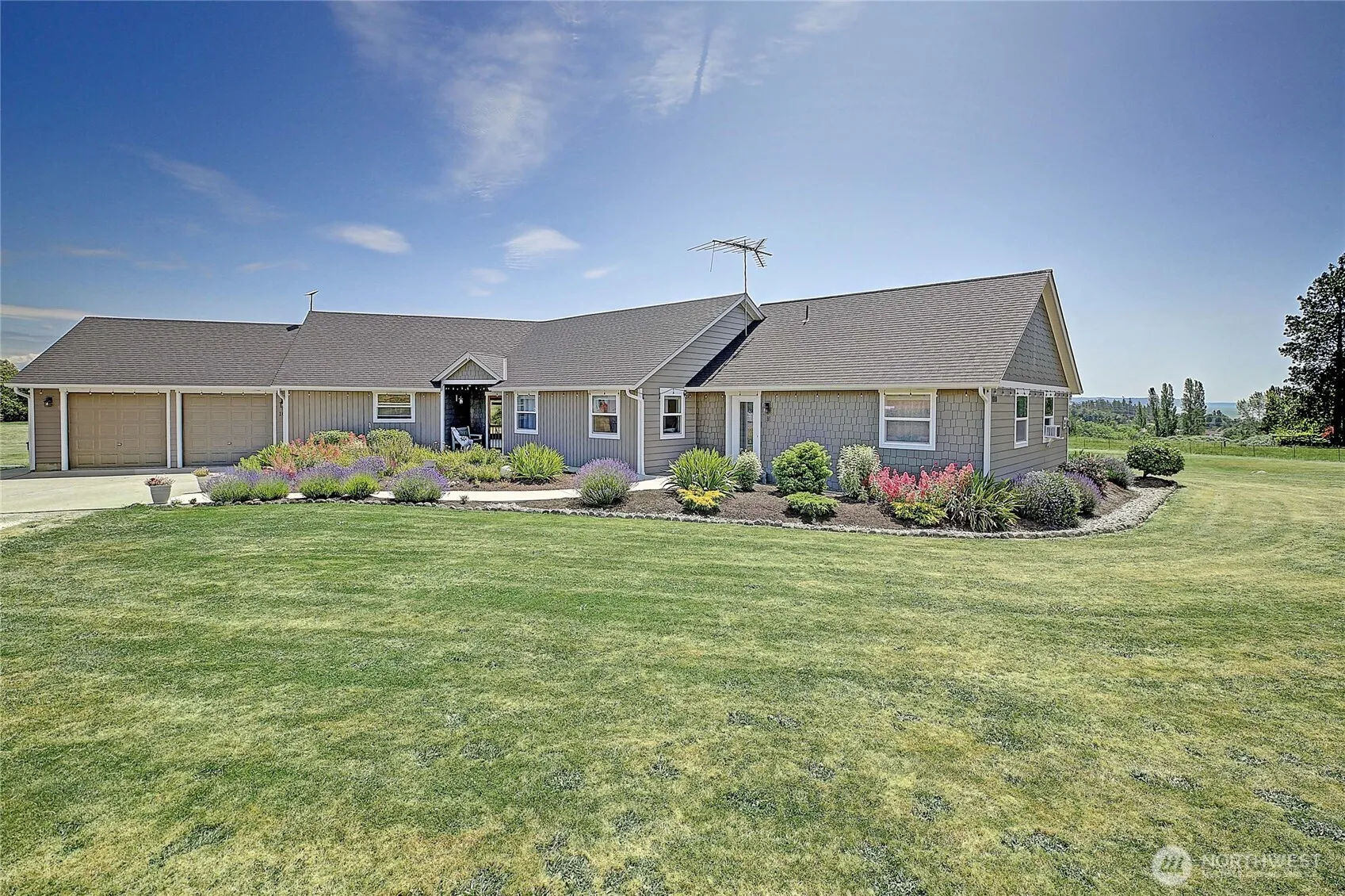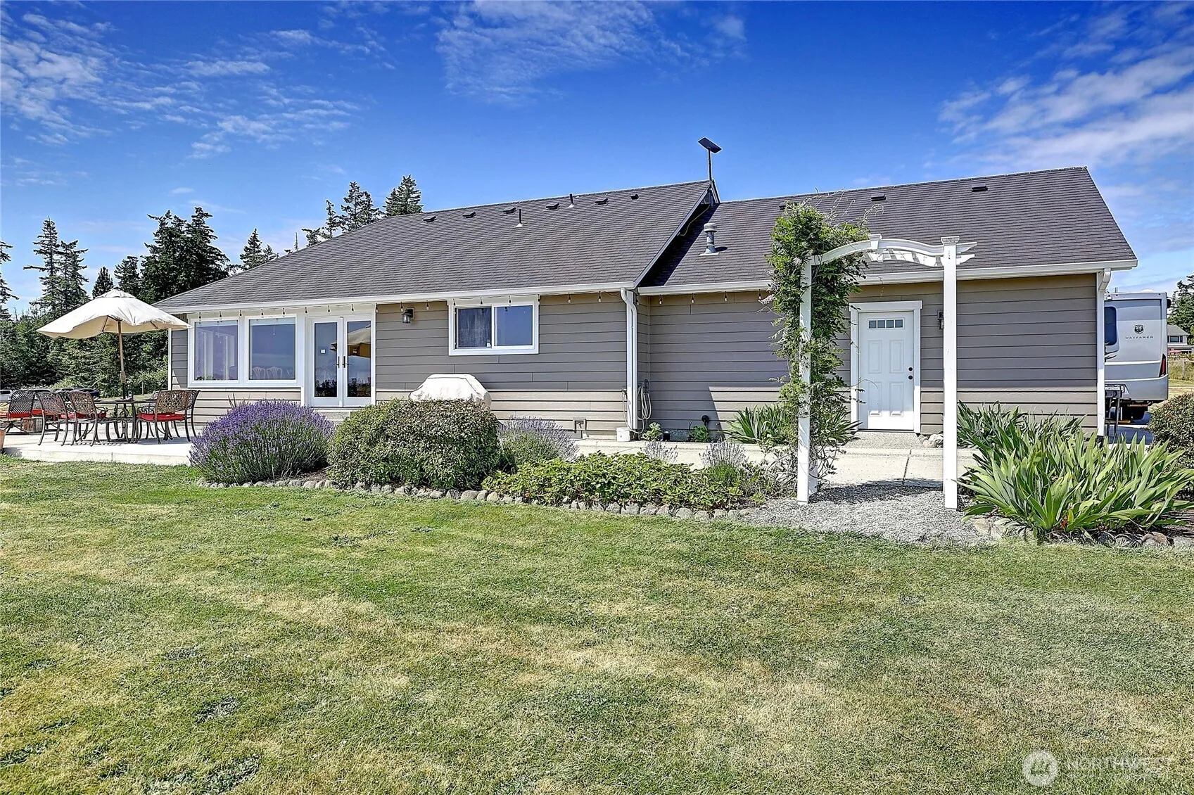 Amazing Multigenerational living opportunity, pride of ownership and a private sunny level 5 acres standout when touring this outstanding property. Enjoy great sunrises and views of Mt. Baker, the Cascades, Mt. Rainier and Port Susan. Main home is 1913 sq ft, features a spacious great room concept with vaulted ceilings, hardwood, slate, and tile floors, 2 beds, 2 3/4 baths with office, a chef’s kitchen delight with granite counters, Wolf cooktop, Electrolux double oven, walk-in pantry etc. Attached 798 sq ft MIL apartment offers a private entrance, ADA-friendly layout, custom kitchen, river rock fireplace, and roll-in shower. Shop is 864′ with 450′ lean to power and water. Turnkey property with a convenient and desirable north end location!