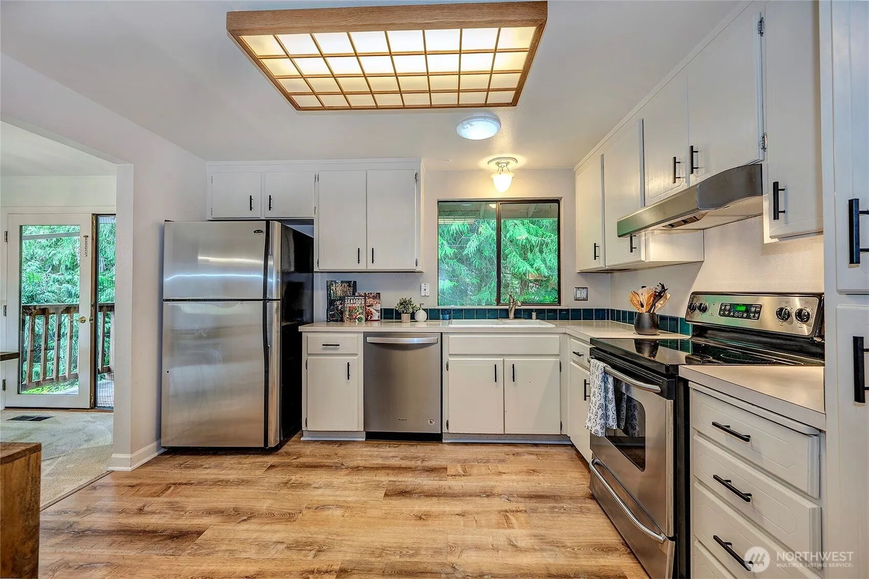 Located in the Woodsound neighborhood. This home offers comfortable living w 4 bedrooms, 2 & 3/4 bathrooms, living, dining, family rooms, a utility room & a 2 car garage. Recent updates include a 50 year presidential roof, hot water tank, plumbing improvements, flooring & paint throughout. The site offers beautiful sunsets, is on a corner lot & is amongst well established trees while adjacent to a greenbelt for added privacy. The location is very quiet & is close to several parks with easy access to I-5, 405 & the Alderwood Mall. This sought after neighborhood is well maintained, offers community events & is within the highly regarded Mukilteo School District. This is a great place to make an investment & call home without disappointments.