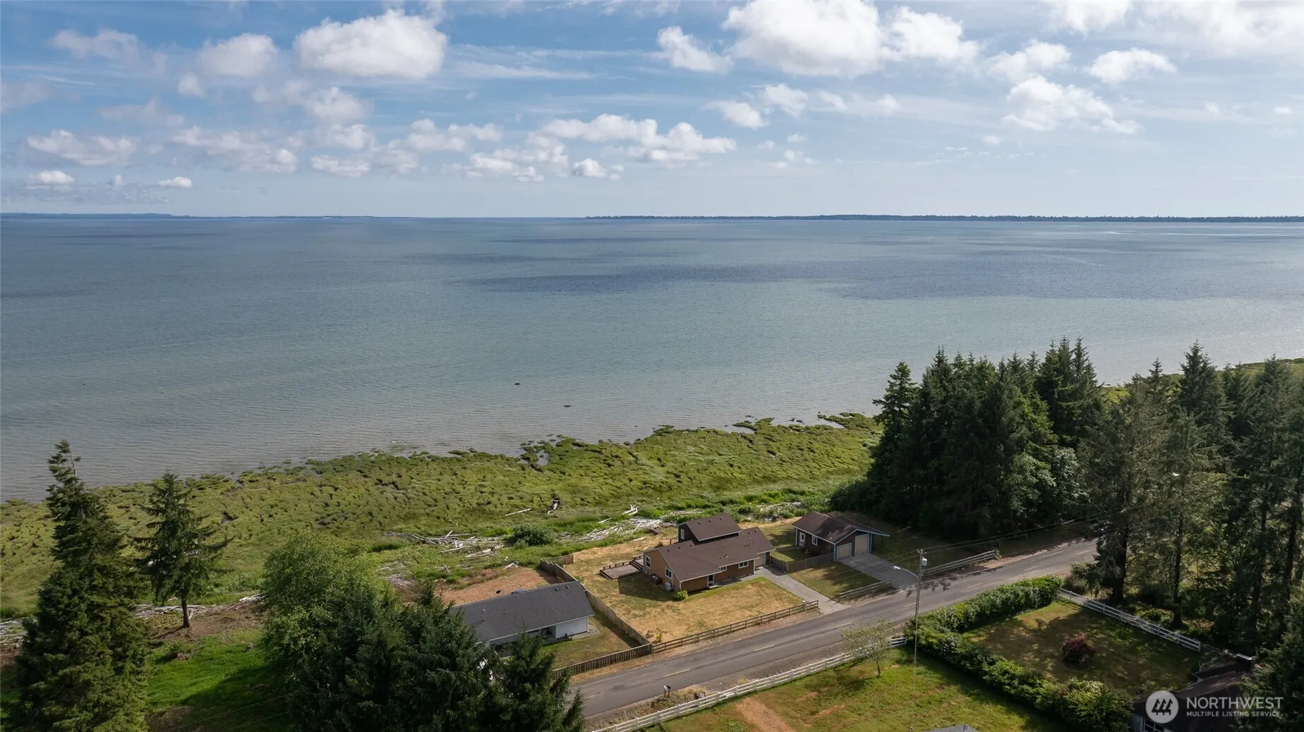 Bay frontage home on over an acre. The home faces South with panoramic views of the North bay. Enjoy the beautiful sunsets with an occational boat passing by. Great room with vaulted ceiling, skylights and wall of windows facing the bay. New ductless heat pumps in the great room and master bedroom keep the home cool in the summer and warm in winter plus a free standing gas stove. Private deck partially covered. Detached shop (772 sq. ft.) has two bays with workshop area plus attached carport and 8 by 10 garden shed. The home includes a wired propane generator. It’s a bird watchers paradise with on occational otter or seal. Peaceful and quiet location close to the beaches.