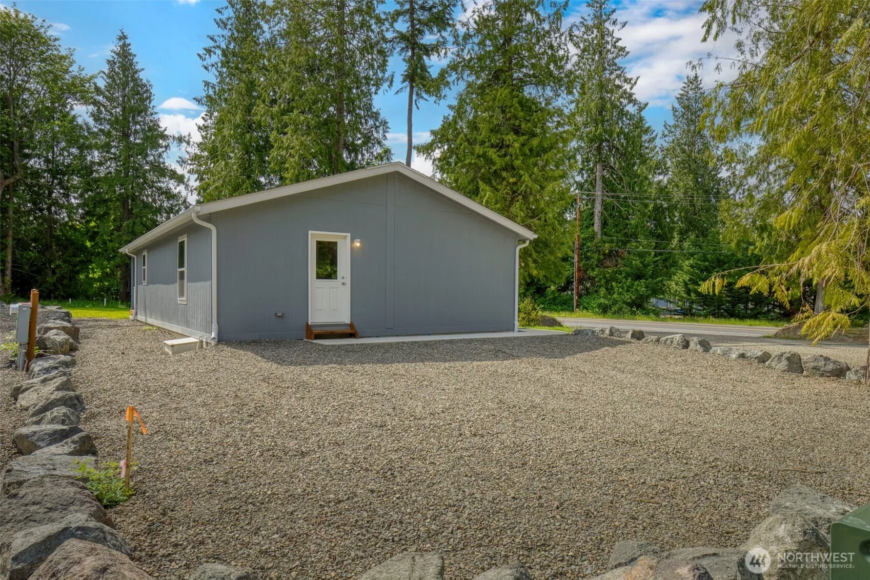The grass is growing and the sun is shining on this Brand new Palm Harbor Home! Situated on 1/3 of an acre, this 1332sf 2 bed, 1.75 bath home is conveniently situated between Port Townsend and Port Hadlock and is an easy walk or short ride to groceries, gas, schools and the library. Set on a quiet cul de sac, with no CCR’s, this tiny neighborhood has tons of level ground to stretch out, garden or tinker on- There’s even newly planted laurels are growing to create a lovely privacy fence. The home itself boasts extended bedrooms, upgraded tile bathroom and granite countertops as well as generous cabinet storage. This modern home is clean as a whistle and the location just cant be beat! See the whole neighborhood in one visit!