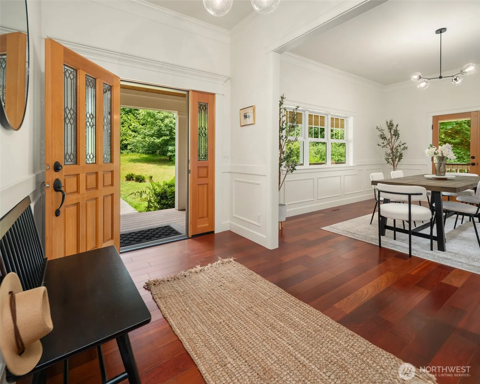 Tucked into one of Vashon’s sunniest and most sought-after settings, this enchanting home on Burton Hill offers privacy, beauty, and ease in equal measure. Single-level living unfolds across light-filled spaces adorned with cherry floors, elegant trimwork, and French doors that invite the outdoors in. A chef’s kitchen with cozy dining nook, inviting fireplace, and formal dining room creates a warm rhythm for everyday living and special occasions alike. Outside, meandering paths wind through native plantings, a fenced garden, and wide lawns edged by Fisher Creek. Soak in the sun on the expansive wrap-around and covered decks. This home is a rare blend of charm, modern craftsmanship, and serenity—all minutes from Burton core, town, and trails