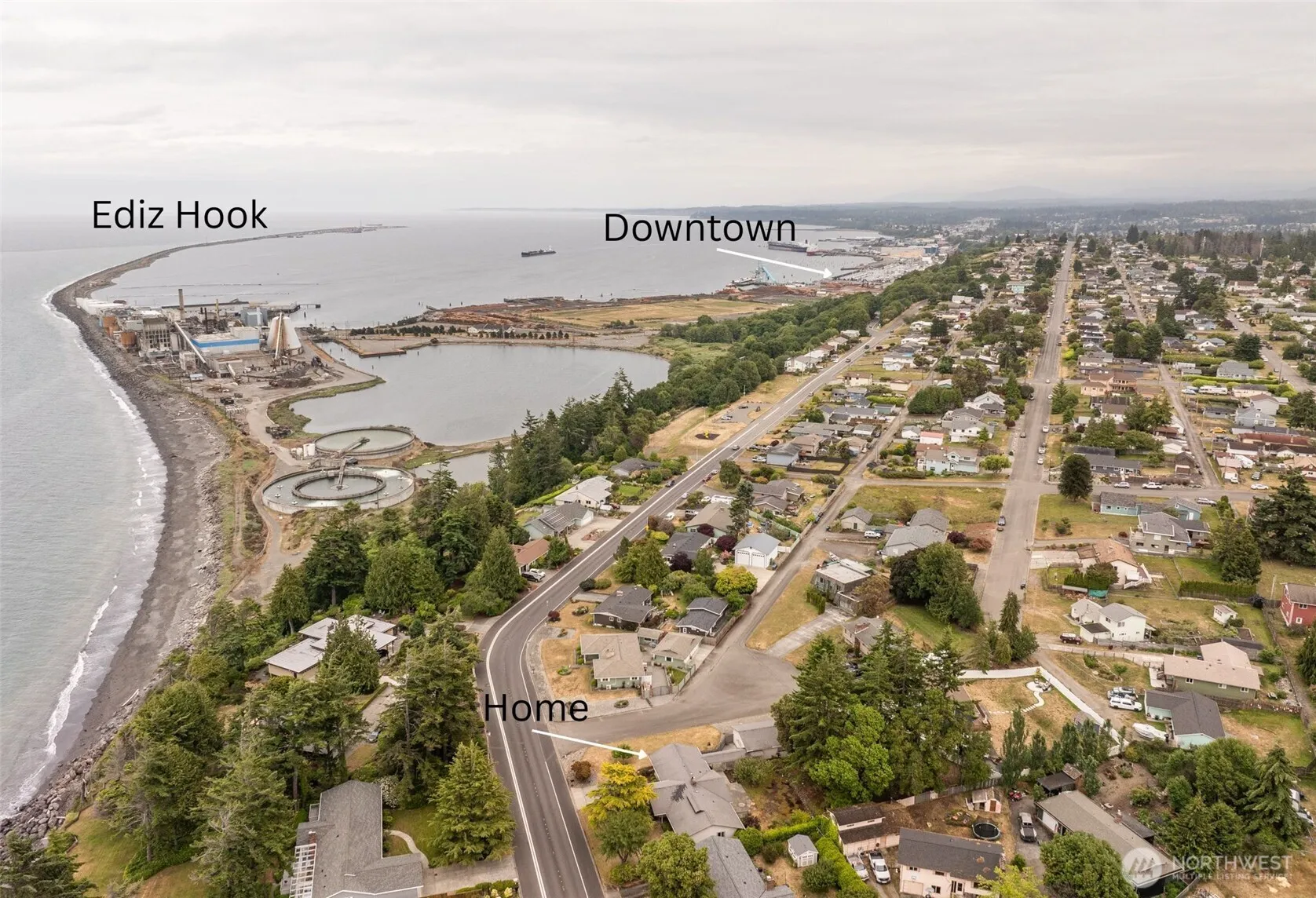 Expansive double corner lot with partial view of the Straits! Four car detached garage for storing all the toys, tools and creating a workshop. Additional RV parking. Open backyard seamlessly connected to the kitchen, making outdoor entertaining a breeze. Eat in kitchen or formal dining–you choose. Kitchen has a propane fireplace and built in display cabinet. Bay windows in the kitchen look out to the backyard for added extra light and charm. Large family room plus a formal living room with coffered vaulted ceilings for added elegance. There’s room for everyone and everything in this thoughtfully laid-out home. Located just blocks from Crown Park Lookout and close to Lincoln Park, offering outdoor adventures right around the corner.