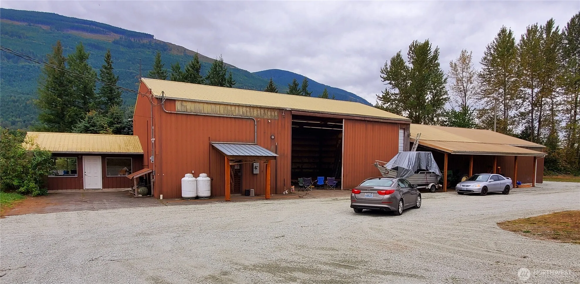 Warehouse, shop or storage space, 2400 sq ft w/12′ ceiling height just 12 min. E of Sedro-Woolley. Zoned Natural Resource Industrial. Opportunity for businesses dealing in the production, manufacture and storage of products utilizing natural resources & materials. Yard space/land up to 9 acres available for add’l cost. Space has 50 amp electricity for welding or other services, and 3-phase power is available in the building. Add’l spaces in building are available w/ ceiling height up to 18′ (pull a semi truck through) and a fully equiped woodshop. Great visiblity right on Hwy 20, with approx 7,000-8,000 cars driving by daily. Owners are open to discussing your ideas. Owner is a licensed broker. Do not enter property w/out Owner or Broker.