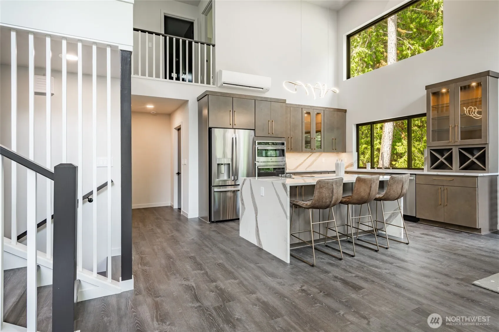 New construction, impeccable design. This inspiring contemporary home features walls of windows framing dramatic territorial views of the forest. Showpiece property also offers comfortable daily living. Natural light fills interior with an innovative 3-level layout expertly matches the needs of today’s lifestyles. Modern chef’s kitchen & office/den. Primary bedroom boasts spa-like ensuite and large walk-in closet. 2 additional bedrooms up stairs are very private. All high-end finishes and appliances throughout. Just some of the features are, all upper windows wired for electric shades, home wired for generator, as well as hot tub & sauna. Solar ready, EV charging installed. A conservation easement to the north side of home, no building.