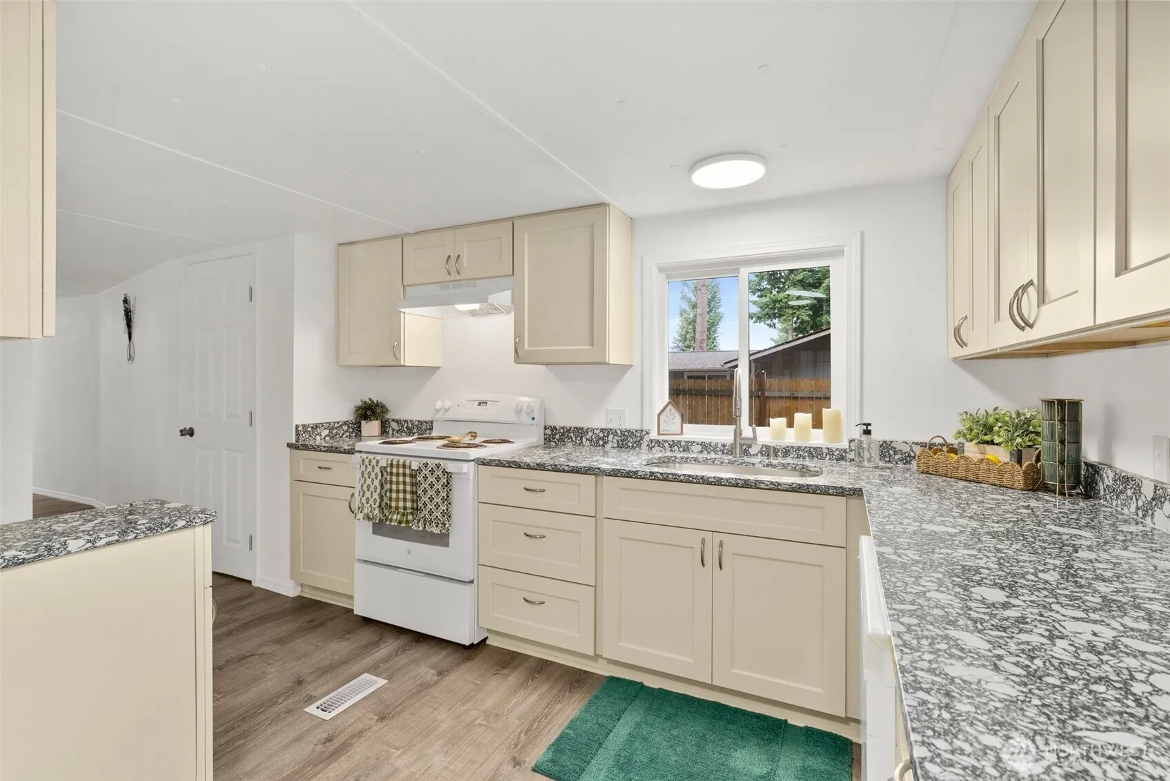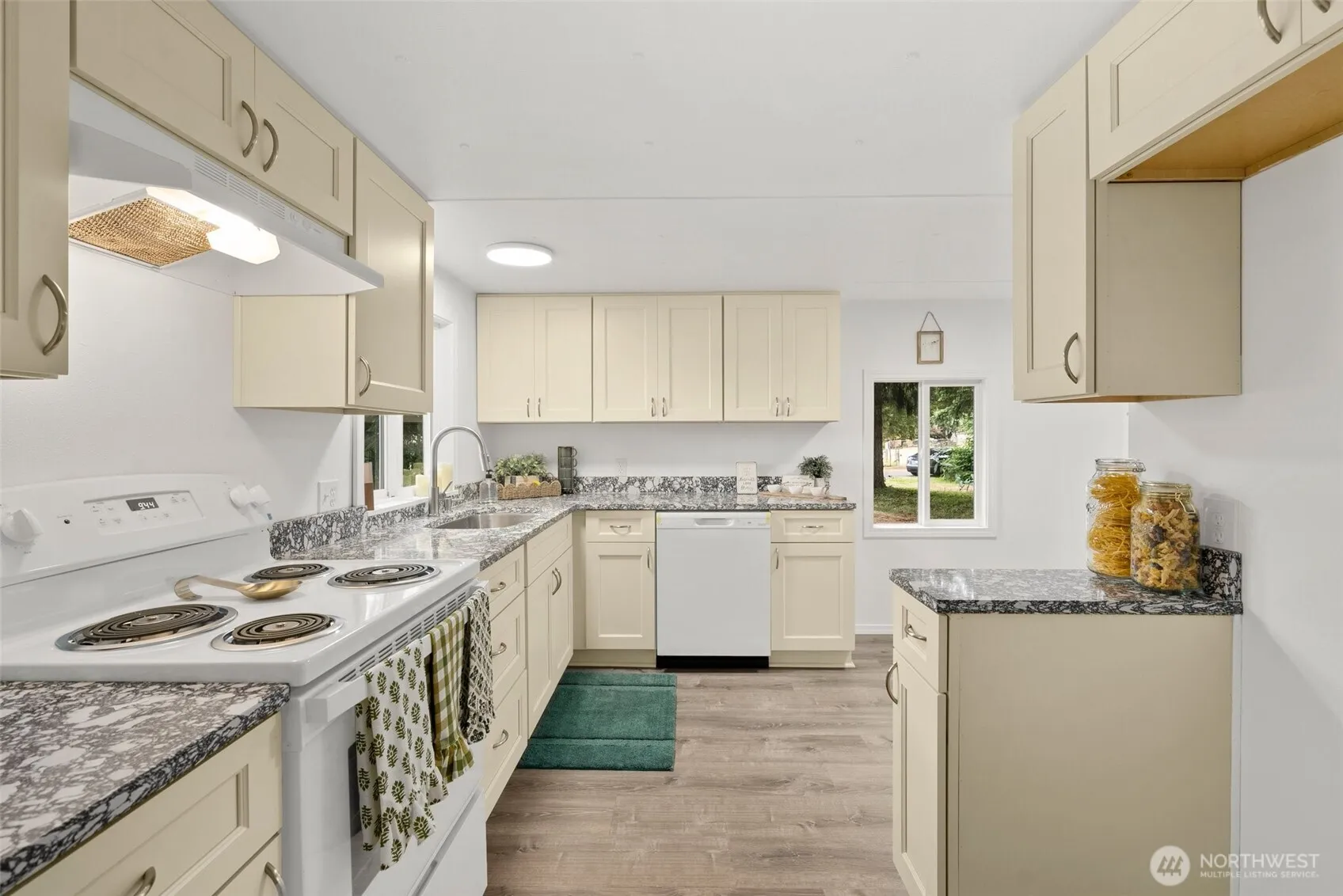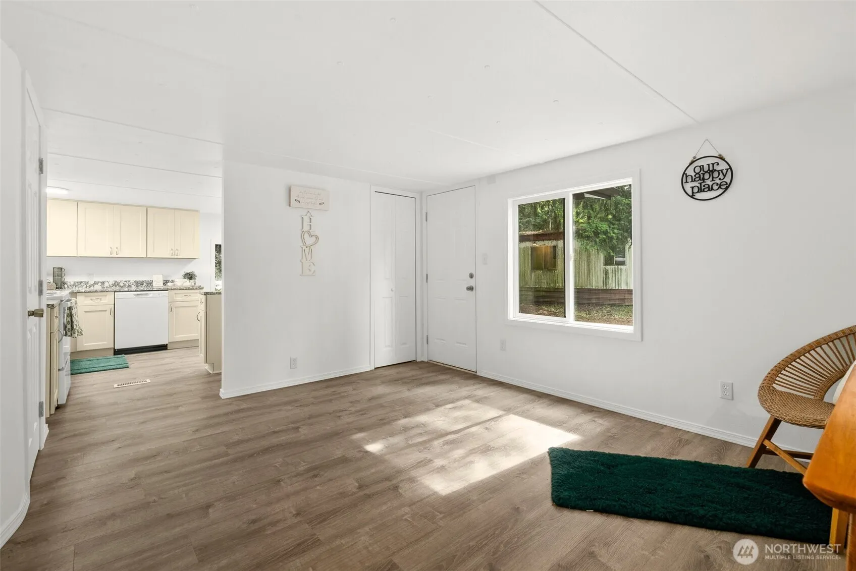 Adorable remodeled home, 2bed, 1bath, bonus room, and a cozy dining nook. Seller has taken pride with this home, updates include all new: T1-11 siding, skirting, copper water lines, windows, roof on home/shed, covered front porch, vapor barrier, flooring insulation, lifeproof LVP flooring, light fixtures, outlets, cabinets, quartz countertops in kitchen/bathroom, new range and dishwasher, plumbing fixtures, doors, and fresh paint inside and out. Not only all that, but for this great price you have a large storage shed with power and covered areas at each side, and greenbelt in the back. The community offers private access to the Nisqually River, pool, parks and more. Easy access to JBLM, and shopping, snag this one up!