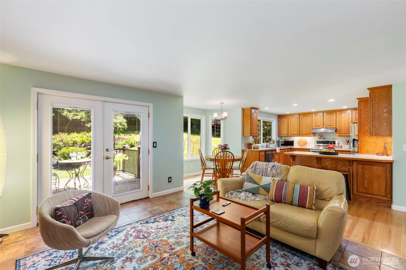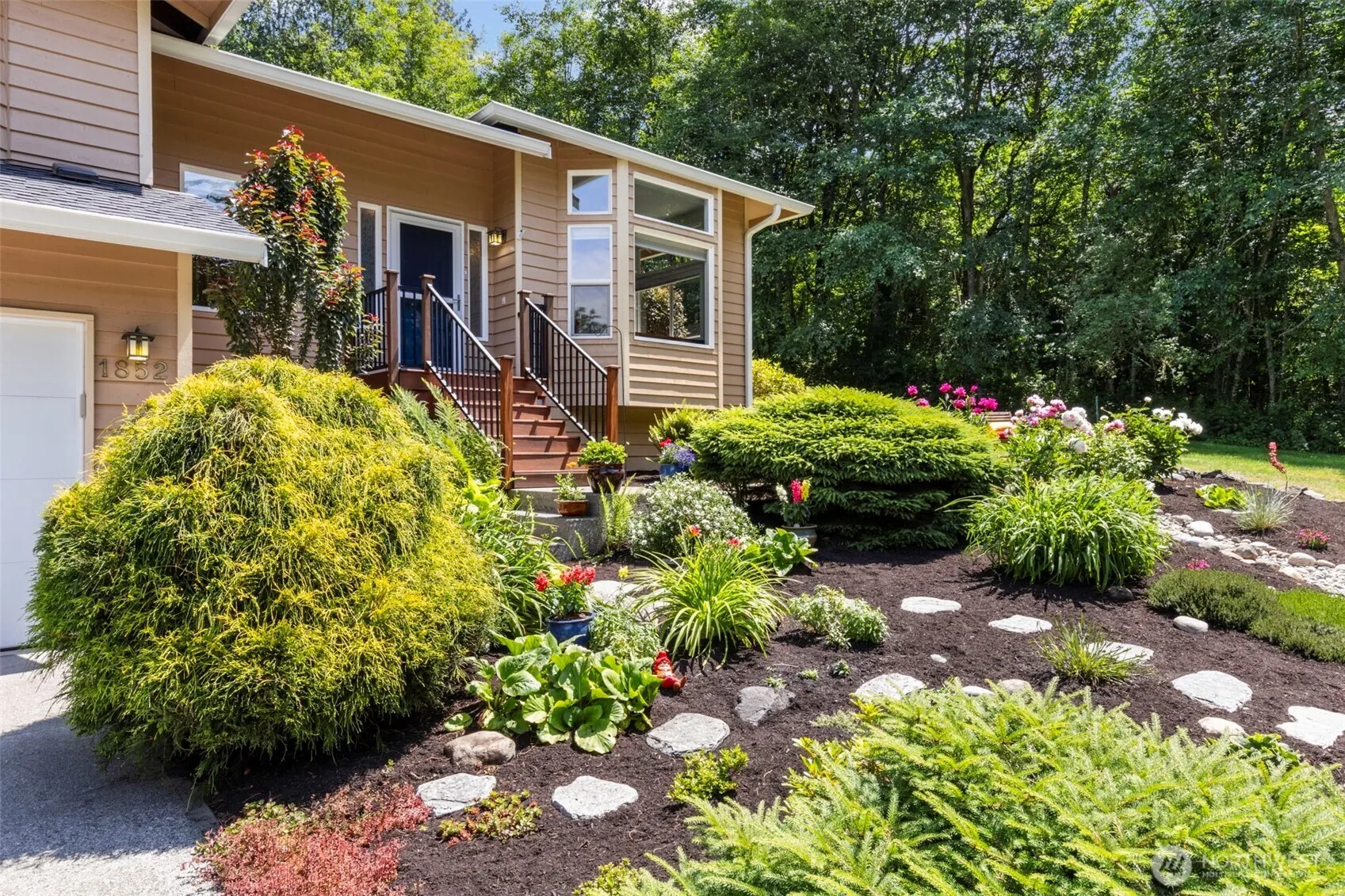 Tucked away on 1.25 private, sun-drenched acres with a peekaboo view of Hood Canal, this beautifully maintained 3BR/2BA home in Lofall offers comfort, quality, & tranquility. Natural light pours into the sunken living room through multiple transom windows. A spacious kitchen features SS appliances, an eating peninsula, & ample cabinet storage. Just off the kitchen, a 2nd living area offers a cozy wood-burning fireplace. Step outside through French doors to a stunning Tigerwood deck & a beautifully landscaped, low-maintenance backyard…a birdwatcher’s dream. The large primary suite includes a 5-piece bath, generous closet, & peekaboo views. Heat pump, 2-car garage, wired for generator, & a huge storage-ready crawlspace. Inspection available