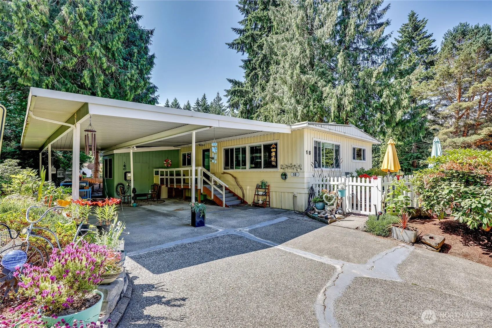 A rare standout in Poulsbo’s beloved Cedar Glen 55+ community! Professionally refreshed from top to bottom, this light-filled gem showcases a Molly McCabe designed kitchen featured in West Sound Magazine, complete with Bosch appliances and a walk-in pantry. Two bedrooms plus a flex office open to a sun-drenched patio ideal for gardening and summer dinners. Parking for 4, EV charger, extra storage, & fenced backyard. Blown-in insulation, updated plumbing/electrical, 2020 water heater, and a heat pump for comfy A/C. Stay toasty all winter with the propane stove. Updated baths, stylish lighting, vinyl windows, and laminate floors seal the deal. Scoop up one of Cedar Glen’s Very Best Today!
