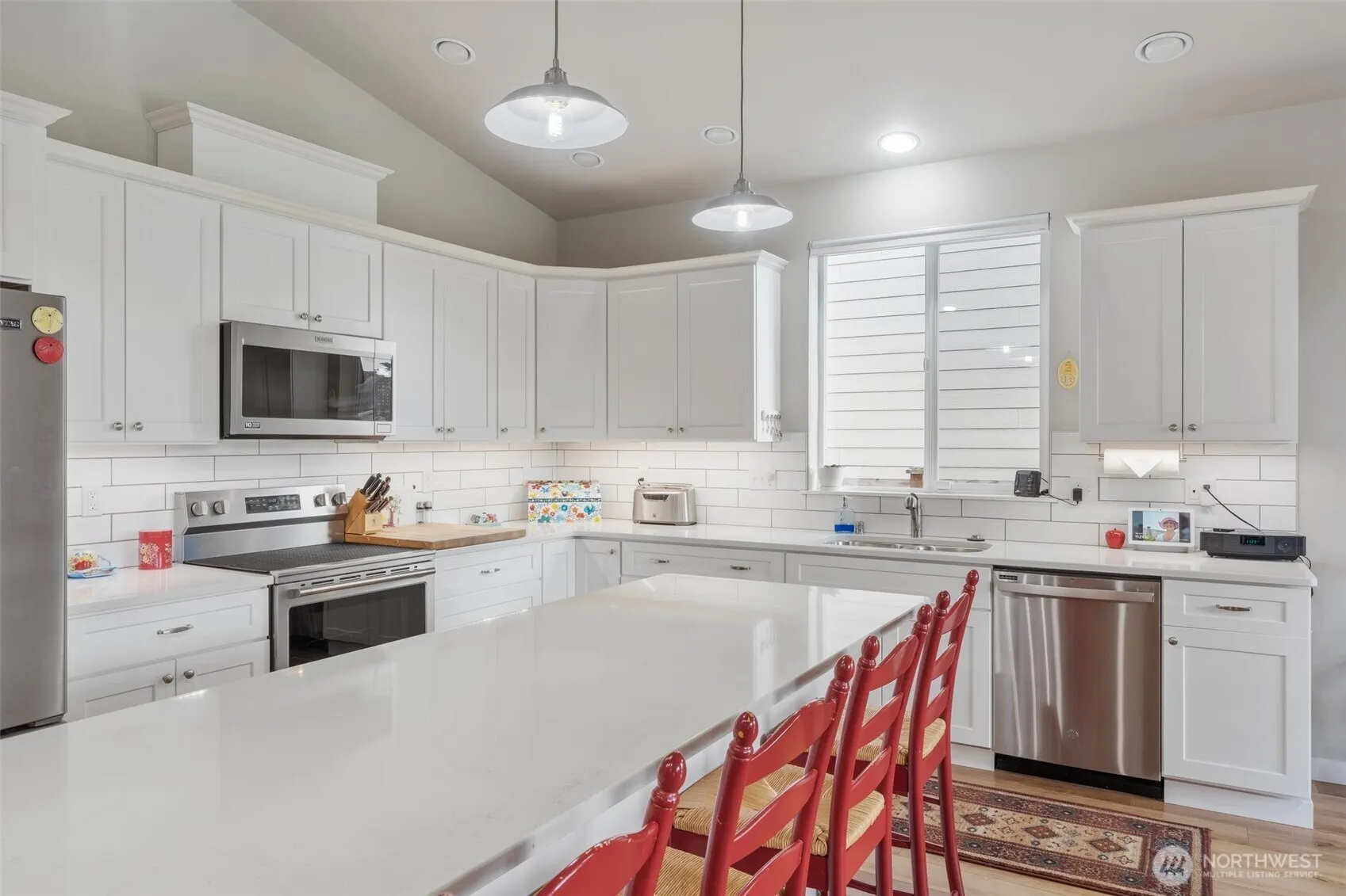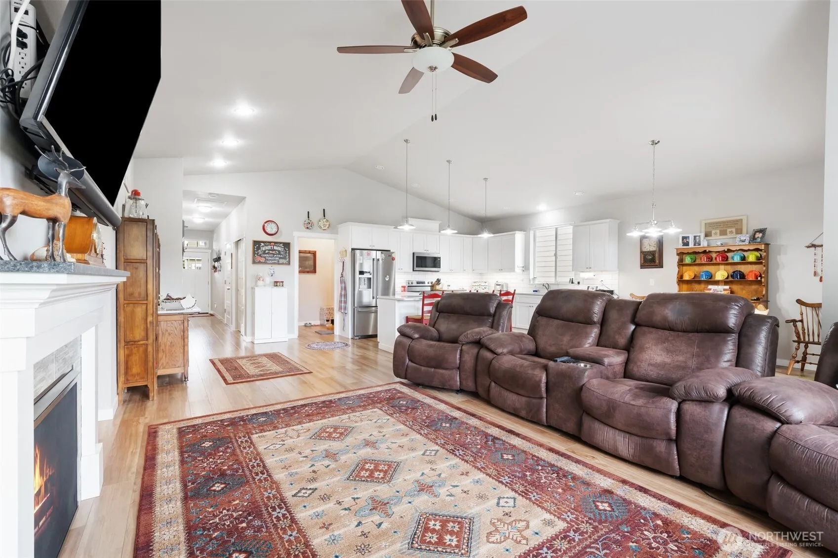 Tucked away on this private drive you’ll come home to an immaculately maintained home. Step into your 3 bed 2 bath, open concept, large quartz island w/power, under cabinet lighting, propane fireplace, tankless water heater, custom cellular window treatments, large walk-in pantry. Primary bedroom has large 5pc bath, walk-in closet, other 2 bedrooms are spacious and main full bathroom just off bdrms. Step outside to your beautifully landscaped oasis w/covered patio, additional covered area w/sun setters canopy, sprinkler & security system. Enjoy the sunsets from your patio or morning coffee. This home has so much to offer. Brand new Maytag kitchen appliances, large laundry, many upgrades makes it better than new. Must see