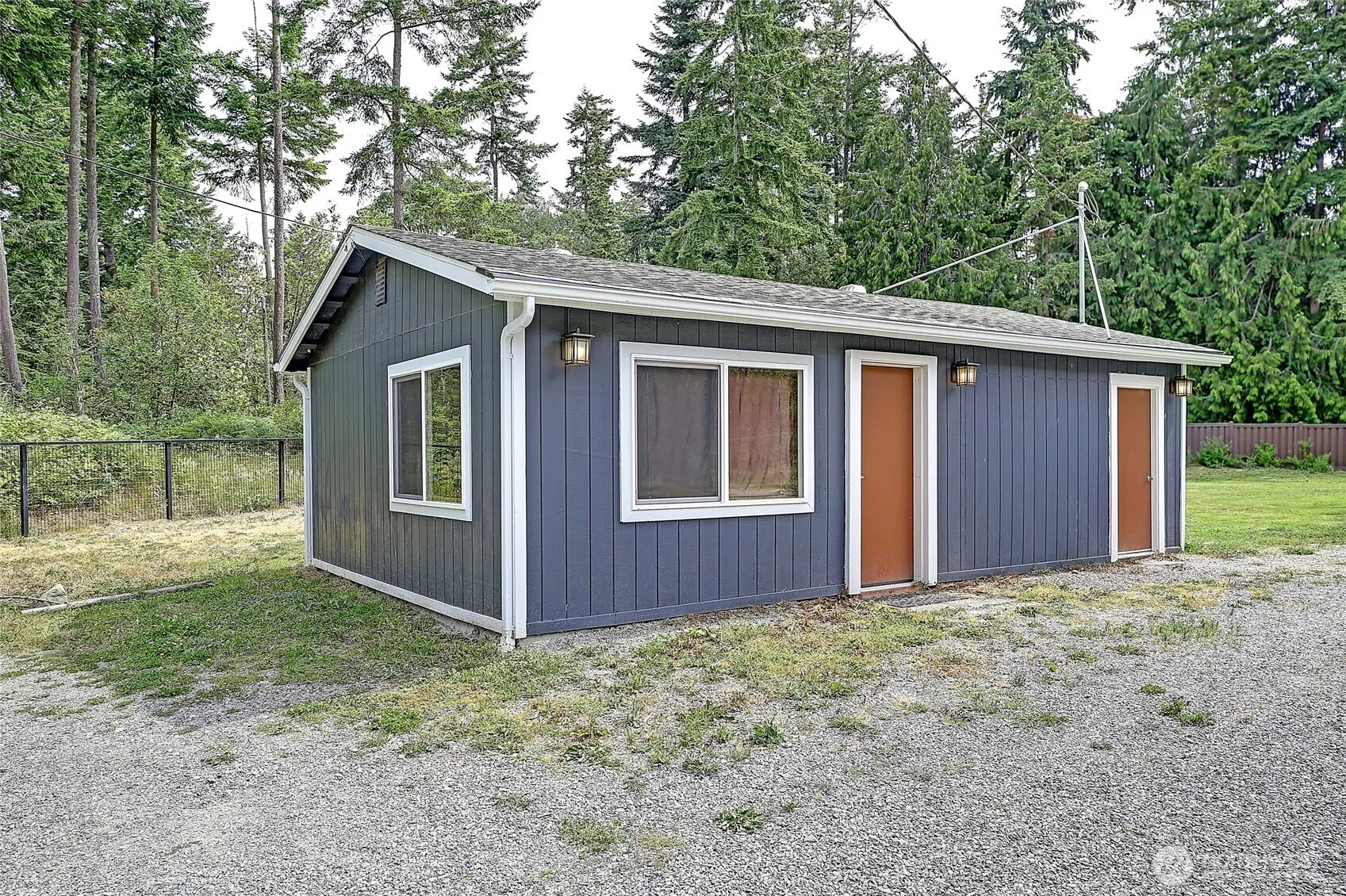 Charming 2-story home on over an acre of level land on beautiful Camano Island. Enjoy a private peaceful setting with mature trees, garden space, partial fencing, and RV parking. A detached 620 sq ft finished outbuilding offers flexible use as storage, art studio, or workshop. Interior layout offers great potential with some interior paint and refreshing. Wired for generator. Room to grow, create, and enjoy island living.
