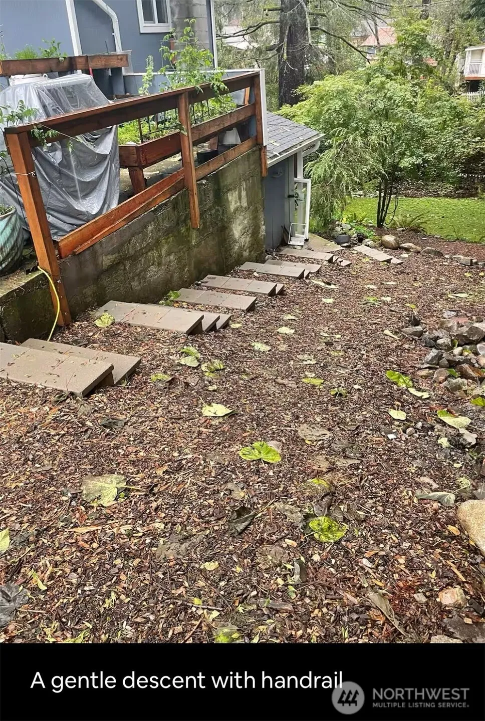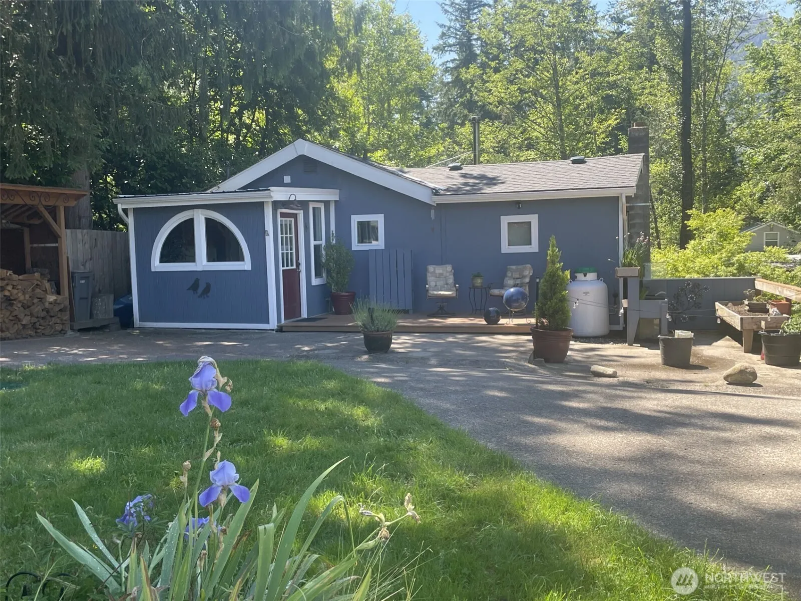 Unique 2 Bed 2 Bath home in May Creek w/Mtn & Water views. Updates include; Windows, Insulation, Roof, Interior doors & tankless water heater. Top floor mud room opens to a Galley Kitchen, Quartz Stone Countertops, Stainless Appliances. Bathroom has Dual Vanity Undermount Sinks, New Tub & Surround, and Stacked Laundry Set. Ground level private entrance leads to a second living room, full kitchen and a large bedroom, full bath, picture window and a 6 jetted tub. Both levels are enhanced with large privately covered decks which overlook May creek. Shipping container on the property acts as additional storage with a shop/workbench. $510,000.00 is w/out the STR platform & furniture. $525,000.00 continues the clientele & platform visibility