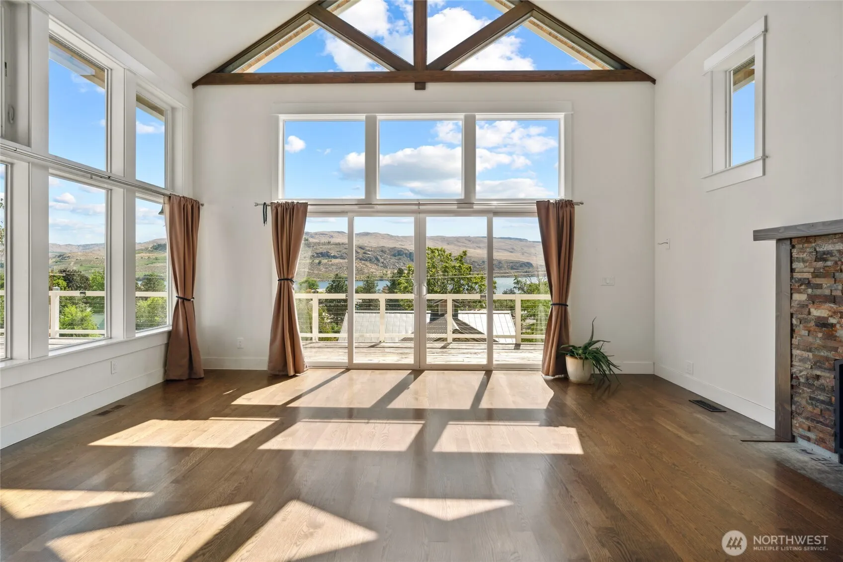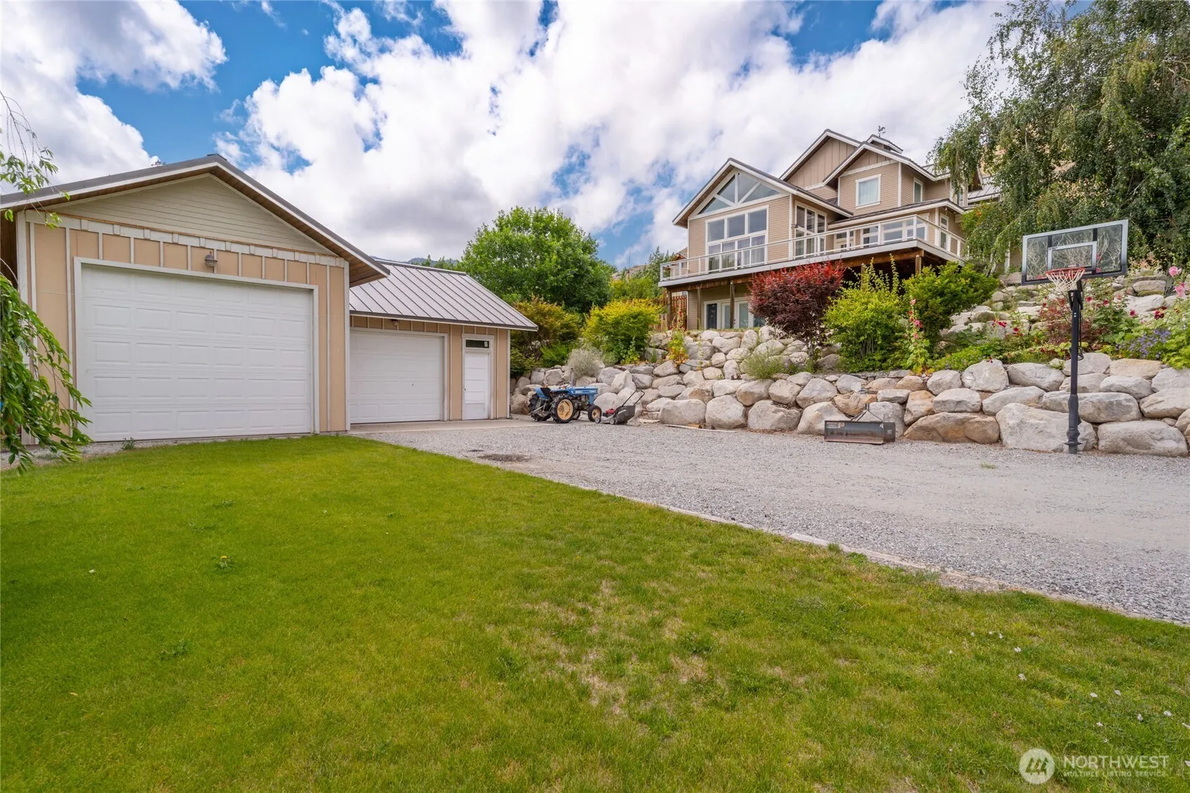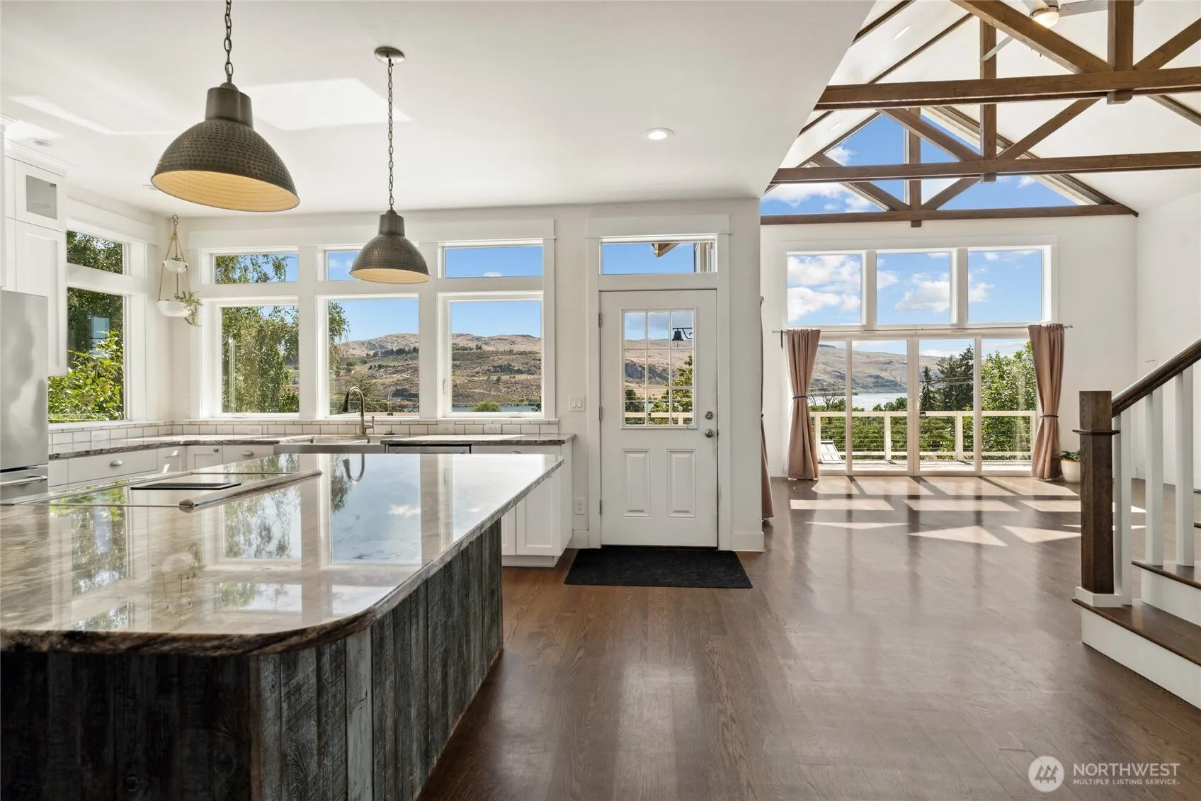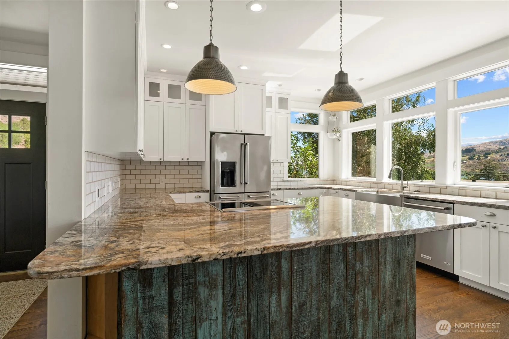 Stunning 4-bed, 4-bath home in Pateros with natural light pouring through expansive windows. Enjoy lake, mountain & sunset views from the ceiling-high living room windows or large entertaining deck. Chef’s kitchen boasts granite counters, island & updated appliances. Features include hardwood floors, daylight basement w/ bath & rec room, very large detached 2-bay shop ideal for RV/boat storage or workspace, fenced dog run, root cellar, mature landscaping, in-ground sprinklers, irrigation, garden boxes & 6 covered parking spots. A perfect mix of comfort, function & scenery.